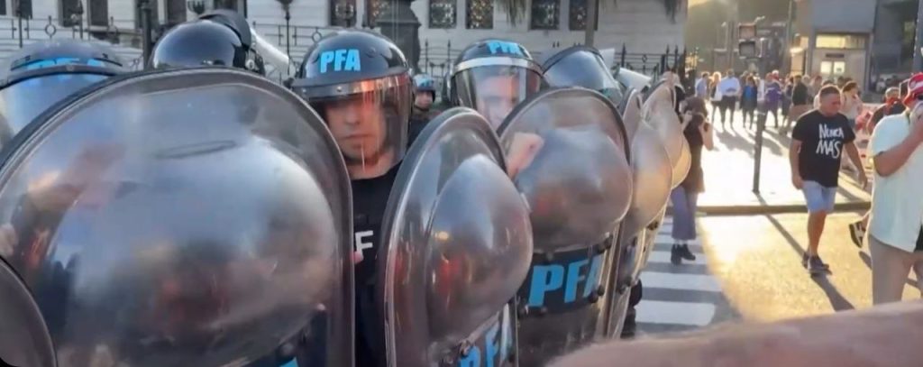 အာဂျင်တီးနားနိုင်ငံမြို့တော် ဗျူနိုအေရီးစ်တွင် ရဲအရာရှိများက ဆန္ဒပြမှုတစ်ရပ်ပြုလုပ်နေသော အငြိမ်းစားများနှင့် ၎င်းတို့အားထောက်ခံသူများကို မတ်လ ၅ ရက်က လူစုခွဲနှိမ်နင်းမှုများပြုရာတွင် ရဲတပ်ဖွဲ့နှင့် ဆန္ဒပြသူများအကြား တိုက်ခိုက်မှုများဖြစ်ပွားခဲ့ရကြောင်း သိရသည်။