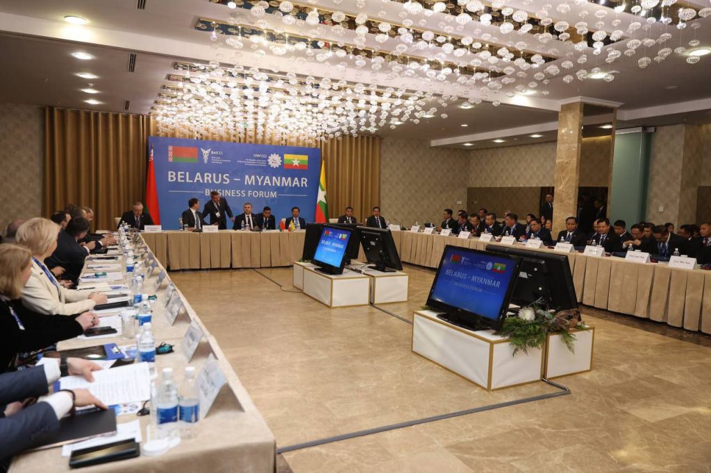 ၂၀၂၅ ခုနှစ် ၊ ဇန်နဝါရီလ ၁၀ ရက်နေ့တွင် ကျင်းပခဲ့သည့် Myanmar – Belarus Business Forum အရ နှစ်နိုင်ငံတာဝန်ရှိသူများသည် ဓာတ်မြေဩဇာကဏ္ဍ၊ ကားထုတ်လုပ်ရေးကဏ္ဍ၊ ဆေးဝါးထုတ်လုပ်ရေးကဏ္ဍ၊ အဆင့်မြင့်ပညာရေးကဏ္ဍ၊ စိုက်ပျိုးရေးနှင့် မွေးမြူရေးကဏ္ဍ၊ တိရစ္ဆာန်ဆေးဝါးထုတ်လုပ်ရေးနှင့် စားသောက်ကုန်ကဏ္ဍ၊ ရေထွက်ပစ္စည်းထုတ်ကုန်ကဏ္ဍများ၏ အလားအလာကို အပြန်အလှန် မျှဝေခွင့်ရရှိခဲ့ကြောင်း၊ မိမိတို့အတူတကွ စီးပွားရေးဆိုင်ရာဆွေးနွေးမှုများကို အောင်မြင်စွာ ကျင်းပပြုလုပ်နိုင်ခဲ့သည့်အတွက်လည်း နောင်အနာဂတ်တွင် နှစ်နိုင်ငံအကြား ပူးပေါင်းဆောင်ရွက်မှုကို ပိုမိုမြှင့်တင်နိုင်မည့် အလားအလာကောင်းများ ရရှိမည်ဟုလည်းယုံကြည်မိကြောင်း၊ ယခုကဲ့သို့မိမိတို့နှင့် နှစ်နိုင်ငံအကြား ပူးပေါင်းဆောင်ရွက်မှု အလားအလာများနှင့် ရင်းနှီးမြှုပ်နှံမှုအခွင့်အလမ်းများကို သိရှိအောင် မျှဝေခွင့်ရသည့်အတွက် အထူးပင် ဂုဏ်ယူဝမ်းမြောက်ရကြောင်း၊ နှစ်နိုင်ငံအကြား ကုန်သွယ်မှုနှင့် ရင်းနှီးမြှုပ်နှံမှုဆိုင်ရာ သဘောတူစာချုပ်များ ချုပ်ဆိုမှု၊ အထူးသဖြင့်အပြန်အလှန် ပေးပို့ထားပြီးဖြစ်သည့် ရင်းနှီးမြှုပ်နှံမှုဆိုင်ရာ သဘောတူစာချုပ်(မူကြမ်း)အပေါ် မိမိတို့နှစ်နိုင်ငံအကြား ပြန်လည်အသက်သွင်းနိုင်ရန်လိုအပ်သည်ကို တိုက်တွန်းပြောကြားလိုကြောင်း၊ အနာဂတ်တွင် နှစ်ဦးနှစ်ဖက် အကျိုးဖြစ်ထွန်းနိုင်သည့် အလားအလာကောင်းများအများကြီးရှိမည်ကို ယုံကြည်ကြောင်း၊ ယနေ့အခမ်းအနားတွင် အဆွေတော်တို့၏ အလေးထားစိတ်ဝင်စားမှုနှင့် တက်တက်ကြွကြွပါဝင်တက်ရောက်ပေးမှုအတွက် ကျေးဇူးတင်ရှိကြောင်းဖြင့် ဗိုလ်ချုပ်မှူးကြီးမင်းအောင်လှိုင်က ပြောကြားသည်။