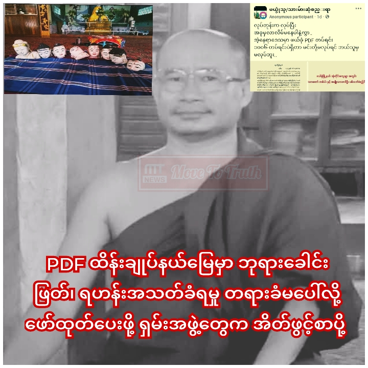 ဒါ့အပြင် ၂ဝ၂၄ ခုနှစ် အောက်တိုဘာလကလည်း ရှမ်းပြည်တောင်ပိုင်း၊ ဖယ်ခုံမြို့နယ်၊ လအိကျေးရွာမှာ ဖြစ်ပွားခဲ့တဲ့ ဆုထူးပန်စေတီတော်ရှိ ဗုဒ္ဓရုပ်ပွားတော် ၁၆ ဆူက ရုပ်ပွားတော် ၉ ဆူကို ရည်ရွယ်ချက်ရှိရှိ ခေါင်းဖြတ်ခဲ့ပြီး ကျန်ရှိတဲ့ ရုပ်ပွားတော်များစွာကိုလည်း ဖျက်ဆီးခဲ့ကြတဲ့ ဖြစ်စဉ်ကလည်း PDF လက်နက်ကိုင်အဖွဲ့အစည်းတွေ ထိန်းချုပ်ထားတဲ့ နယ်မြေမှာ ဖြစ်ပွားခဲ့ပြီး ဒီကိစ္စနဲ့ပတ်သက်လို့ မိုးဗြဲ PDF က တရားခံကို ဒေသခံတွေနဲ့အတူ ပူးပေါင်း ဖော်ထုတ်သွားမယ်လို့ ထုတ်ပြန်ကြေညာခဲ့ပေမယ့်လည်း ဒီနေ့ချိန်အထိ အဆိုပါ ဖြစ်စဉ်က တရားခံကို လုံးဝ ဖမ်းဆီးအရေးယူနိုင်ခဲ့ခြင်း မရှိ၊ ပွင့်လင်းမြင်သာမှုရှိစွာ ဆောင်ရွက်ခြင်းများ မရှိခဲ့တာကိုလည်း မျက်မြင် တွေ့မြင်ရတယ်လို့ အိတ်ဖွင့်စာက ဆိုပါတယ်။