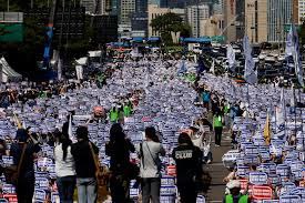 တောင်ကိုရီးယားနိုင်ငံမှာ ၂၀၂၄ ခုနှစ် ဖေဖော်ဝါရီလမှာ အစိုးရက ဆေးကျောင်းများသို့ တက်ရောက်ခွင့် ရရှိသူဦးရေကို ၂၀၂၅ ခုနှစ်ကစလို့ ၂,၀၀၀ ထိ စတင်တိုးမြှင့်မယ်လို့ ကြေညာခဲ့ပြီးတဲ့နောက်မှာ အလုပ်သင်ဆရာဝန်တွေနဲ့ ဆေးကျောင်းသားတွေ ထောင်နဲ့ချီလို့ သူတို့ရဲ့ လုပ်ငန်းခွင်တွေ၊ စာသင်ခန်းတွေကို စွန့်ခွာပြီး သပိတ်မှောက်ခဲ့ကြတဲ့ အငြင်းပွားမှုကို အဆုံးသတ်စေဖို့ ပညာရေးဝန်ကြီးဌာနက သူ့ရဲ့ဆေးကျောင်းသားသစ်တိုးမြှင့်မယ့်အစီအစဉ်ကို ရပ်ဆိုင်းထားဖို့ မတ်လ ၇ ရက်မှာအဆိုပြုချက်တစ်ရပ်ကို ကြေညာခဲ့ပါတယ်။