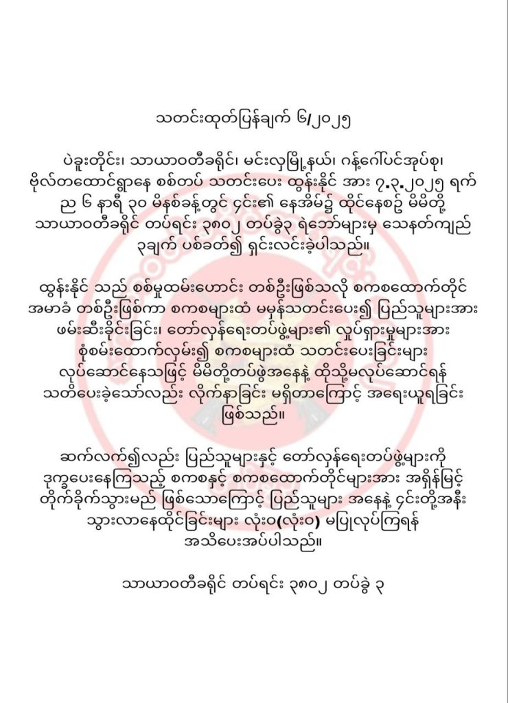 ညအချိန် နေအိမ်တွင် ထိုင်နေသည့် လက်နက်မဲ့အမျိုးသားတစ်ဦးကို NUG ဩဇာခံ သာယာဝတီ PDF က သေနတ်ကျည်သုံးချက်ဖြင့် ပစ်သတ်၍ သတင်းပေးဟု တံဆိပ်ကပ်ကာ ရှင်းလင်းထားသည်ဟု ယနေ့ ဝန်ခံလာသည်။
