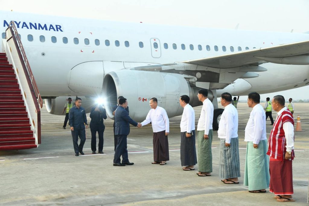 နိုင်ငံတော်စီမံအုပ်ချုပ်ရေးကောင်စီ (SAC)ဥက္ကဋ္ဌ နိုင်ငံတော်ဝန်ကြီးချုပ် ဗိုလ်ချုပ်မှူးကြီးမင်းအောင်လှိုင်သည် ရုရှားဖက်ဒရေးရှင်းနိုင်ငံသမ္မတ H.E. Vladimir Vladimirovich Putin ၏ ဖိတ်ကြားချက်အရ ရုရှားဖက်ဒရေးရှင်းနိုင်ငံသို့ တရားဝင် ချစ်ကြည်ရေးခရီးစဉ်အဖြစ်လည်းကောင်း၊ ဘယ်လာရုစ်သမ္မတနိုင်ငံ သမ္မတ H.E. Mr. Alexander Gregoryevich Lukashenko၏ ဖိတ်ကြားချက်အရ ဘယ်လာရုစ်သမ္မတ နိုင်ငံသို့ နိုင်ငံတော်အဆင့် တရားဝင်ချစ်ကြည်ရေးခရီးစဉ်အဖြစ် လည်းကောင်း သွားရောက်ခဲ့ပြီး ယမန်နေ့ဒေသစံတော်ချိန်မွန်းလွဲပိုင်းတွင် ရုရှားဖက်ဒရေးရှင်းနိုင်ငံ၊ နိုဗိုစီဗစ်မြို့၊ သာမာရှဲဗာလေဆိပ်မှ ပြန်လည်ထွက်ခွာကြရာ နိုဗိုစီဗစ်ဒေသ အုပ်ချုပ်ရေးမှူး မစ္စတာ တရာ့ဗနီကော့ဗ်အန်ဒရေ အလက်ဇန်ဒရို ဘစ်ချ်၊ ရုရှားဖက်ဒရေးရှင်းနိုင်ငံဆိုင်ရာ မြန်မာနိုင်ငံသံအမတ်ကြီး ဦးသစ်လင်းအုန်း၊ မြန်မာကောင်စစ်ဝန်ချုပ်နှင့် တာဝန်ရှိသူများက လေဆိပ်တွင် ပို့ဆောင်နှုတ်ဆက်ကြသည်။