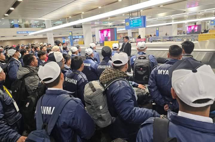 ပုံစာ-ကိုရီးယားနိုင်ငံသို့ သွားရောက်အလုပ်လုပ်ကိုင်ကြသည့် မြန်မာအလုပ်သမားများကို တွေ့ရစဉ်။ (ဓာတ်ပုံ-ကိုရီးယားနိုင်ငံဆိုင်ရာမြန်မာသံရုံး)