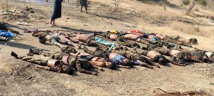 ပုံစာ။ ဝက်လူးရဲစခန်းတိုက်ပွဲအတွင်း သေဆုံးနှင့် ဖမ်းမိသူဟုဆိုကာ အမှတ် (၁) စစ်ဒေသ ထုတ်ပြန်ဖြန့်ဝေနေသည့်ပုံအချို့မြင်ကွင်း (Photo / CRD)