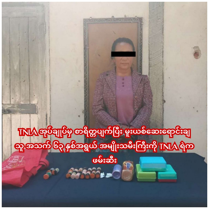ပြီးခဲ့တဲ့ ၂၀၂၄ ခုနှစ် ဇူလိုင်လကစ TNLA လက်နက်ကိုင်တွေ နယ်မြေလုယက် အုပ်ချုပ်နေတဲ့ မိုးကုတ်မြို့မှာ မူးယစ်ဆေးဝါးရောင်းဝယ်သူ အမျိုးသမီးကြီးတစ်ဦးကို မတ်လ ၁၂ ရက်မှာ TNLA ရဲတွေက ဖမ်းဆီးလိုက်ပါတယ်။