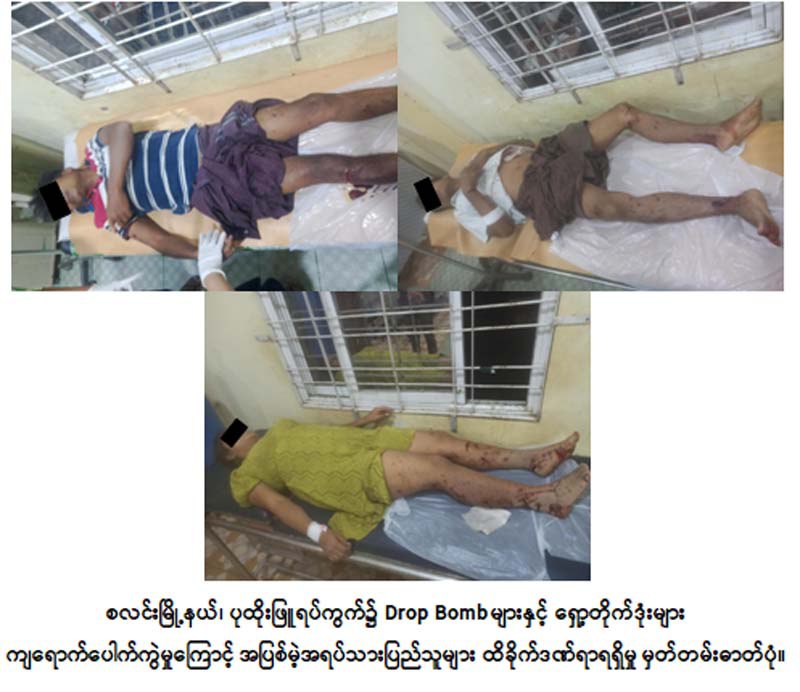 ဖြစ်စဉ်မှာ ၂၀၂၅ ခုနှစ်၊ မတ်လ ၁၂ ရက်နေ့တွင် မကွေးတိုင်းဒေသကြီး၊ စလင်းမြို့နယ်၊ ပုထိုးဖြူရပ်ကွက်သို့ PDF အဖွဲ့က အများပြည်သူထိခိုက်စေရန် ရည်ရွယ်၍ Drone ဖြင့် Drop Bomb များနှင့် ရှော့တိုက်ဒုံးများဖြင့် ပစ်ချတိုက်ခိုက်ခဲ့ရာ အဆိုပါ ရပ်ကွက်အတွင်းသို့ Drop Bomb များနှင့် ရှော့တိုက် ဒုံးသီးများ ကျရောက်ပေါက်ကွဲခဲ့မှုကြောင့် ပုထိုးဖြူရပ်ကွက်နေ ဦးအောင်ဆန်းလင်း(၄၀)နှစ်၊ ဦးသန်းဇော်ဌေး(၃၅)နှစ်နှင့် ဒေါ်ယမုံဇင်(၂၇)နှစ်တို့ ဗုံးသီးပေါက်ကွဲစထိမှန်ဒဏ်ရာများရရှိခဲ့၍ ဆေးကုသနိုင်ရေး စလင်းမြို့နယ်ပြည်သူ့ဆေးရုံသို့ ပို့ဆောင်ထားရှိကြောင်း သိရသည်။