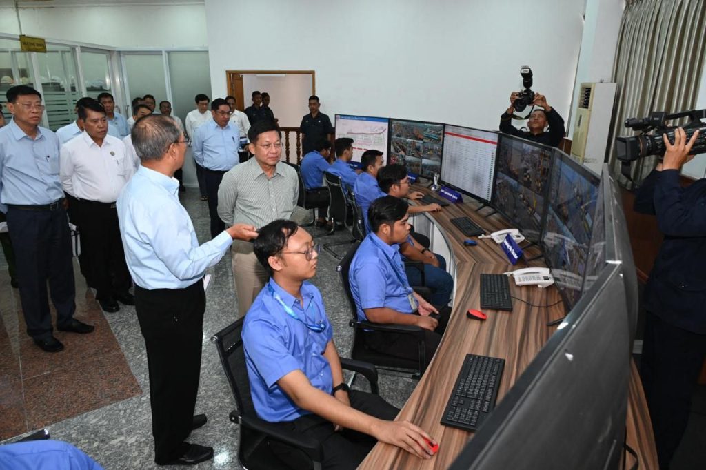 ယင်းနောက် SAC ဥက္ကဋ္ဌသည် Asia World Port Terminal- AWPT ဆိပ်ကမ်းတံတားအတွင်း လှည့်လည်၍ ဆိပ်ကမ်းလုပ်ငန်းများ ဆောင်ရွက်နေမှုများကို ကြည့်ရှု့စစ်ဆေးခဲ့ပြီး တာဝန်ရှိသူများ၏ တင်ပြချက်များအပေါ် လိုအပ်သည်များ လမ်းညွှန်မှာကြားခဲ့သည်။