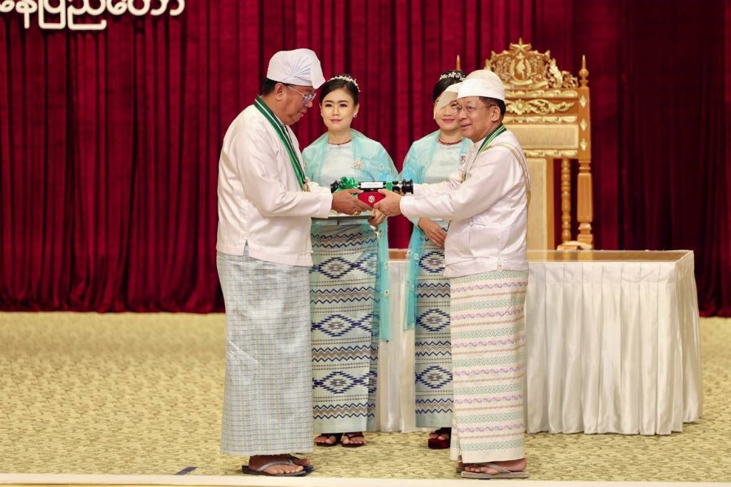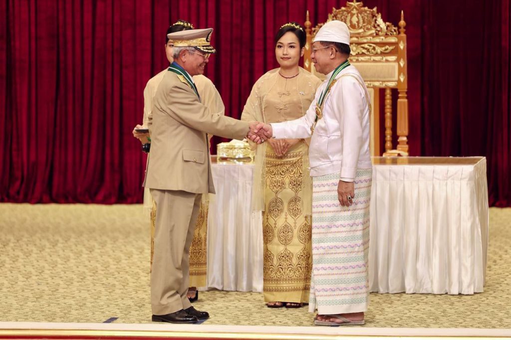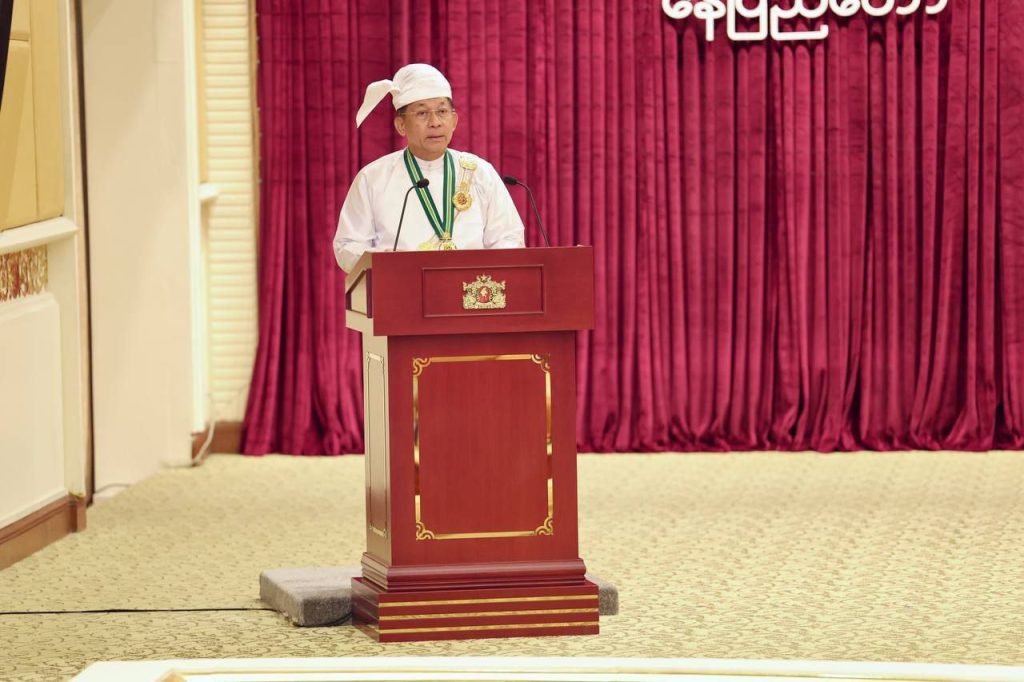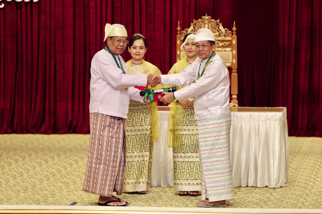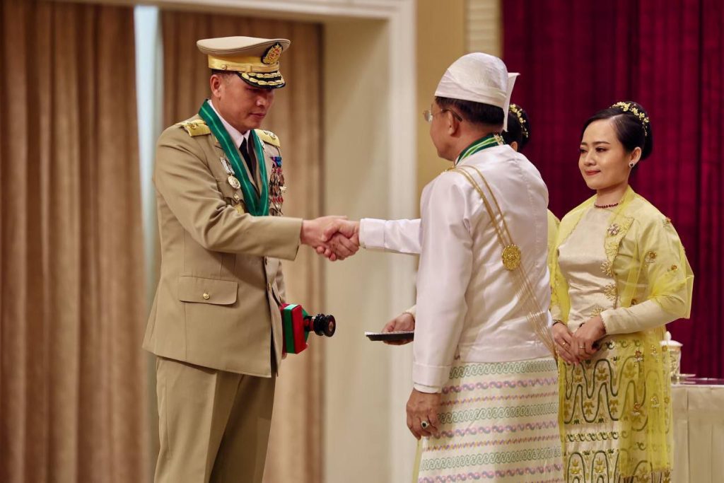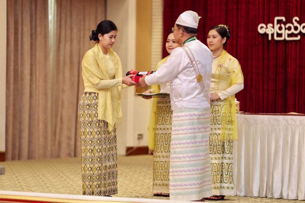 ၂၀၂၅ ခုနှစ်၊ ဂုဏ်ထူးဆောင်ဘွဲ့များ ချီးမြှင့်အပ်နှင်းခြင်း အခမ်းအနားကို ယနေ့ နံနက်ပိုင်းတွင် နိုင်ငံတော်စီမံအုပ်ချုပ်ရေးကောင်စီဥက္ကဋ္ဌရုံး၊ သဘင်ဆောင်၌ ကျင်းပရာ နိုင်ငံတော်စီမံအုပ်ချုပ်ရေးကောင်စီ (SAC) ဥက္ကဋ္ဌ နိုင်ငံတော်ဝန်ကြီးချုပ် ဗိုလ်ချုပ်မှူးကြီး သတိုးမဟာသရေစည်သူ သတိုးသီရိသုဓမ္မ မင်းအောင်လှိုင် တက်ရောက် အမှာစကားပြောကြားပြီး ဂုဏ်ထူးဆောင်ဘွဲ့များချီးမြှင့်အပ်နှင်းသည်။