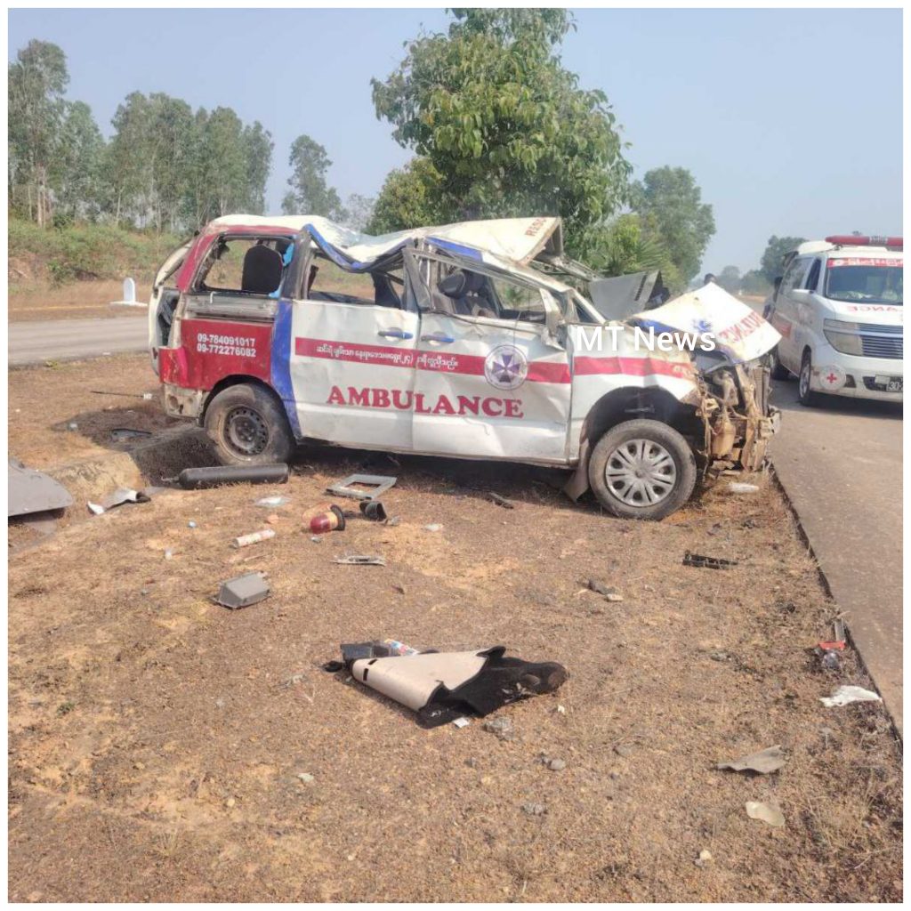 ” လူနာတင်ယာဥ်က သုံးပတ်၊ လေးပတ်လိမ့်ပြီး လမ်းလယ်ကျွန်းမှာ ကန့်လန့်ဖြတ် ရပ်သွားတာ။ လူနာနဲ့လူနာစောင့်က ဆုံးသွားတယ်”ဟု ကယ်ဆယ်ရေးတွင် ပါဝင်သူတစ်ဦးကပြောသည်။
