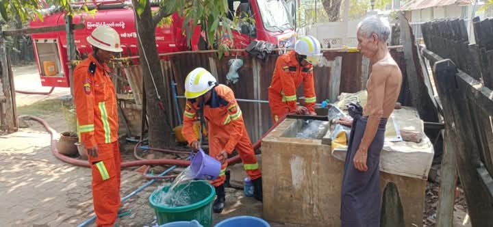 အလားတူ မန္တလေးတိုင်းဒေသကြီး၊ စစ်ကိုင်းတိုင်းဒေသကြီးတို့ အပါအဝင် ငလျင်ဒဏ်ကြောင့် ရေအခက်အခဲဖြစ်ပေါ်ပါက မီးသတ်ဦးစီးဌာနများသို့ အကူအညီ တောင်းခံနိုင်ကြောင်း၊ မိမိတို့၏ အဓိကတာဝန်ဖြစ်သော မီးလောင်ပါက ငြှိမ်းသတ်ရန် အသင့်အနေအထားဖြင့် အသင့်စုဖွဲထားသော ကားများကို သီးခြားထားရှိပြီး ငလျင်ဒဏ် မသင့်သော တိုင်းဒေသကြီး / ပြည်နယ်များမှ ရေကားများကို တောင်းခံဖြန့်ခွဲပေးထားရာ အဆိုပါကားများဖြင့် ရေပေးဝေရေးလုပ်ငန်းများကို ကူညီဆောင်ရွက် ပေးသွားမည်ဖြစ်ကြောင်း သိရသည်။