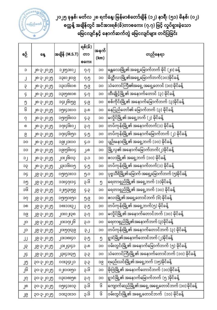 မတ်လ ၂၈ ရက် နေ့လယ် ၁၂ နာရီ ၅၁ မိနစ် ၂ စက္ကန့်က ပြင်းအား ရစ်ချ်တာစကေး ၇ ဒသမ ၇ အဆင့်နဲ့ လှုပ်ခတ်ခဲ့တဲ့ ဆိုးရွားပြင်းထန်တဲ့ ဖျက်အားပြင်း မန္တလေးငလျင်ကြီး လှုပ်ခတ်ပြီး ၁၁ ရက်အကြာ ဧပြီ ၈ ရက် မနက်မှာ နောက်ဆက်တွဲ ငလျင်တွေ လှုပ်ခတ်မှု အကြိမ် ၁၀၀ ပြည့်သွားခဲ့ပေမဲ့ ဒီနေ့ ဧပြီ ၁၁ ရက်အထိ မရပ်တန့်ဘဲ ဧပြီ ၈ ရက် မနက်ကနေ ဒီ သုံးရက်အတွင်း ၁၆ ကြိမ်ထပ်မံလှုပ်ခတ်ခဲ့တယ်လို့ မိုးလေဝသနဲ့ ဇလဗေဒညွှန်ကြားမှုဦးစီးဌာနက သိရပါတယ်။