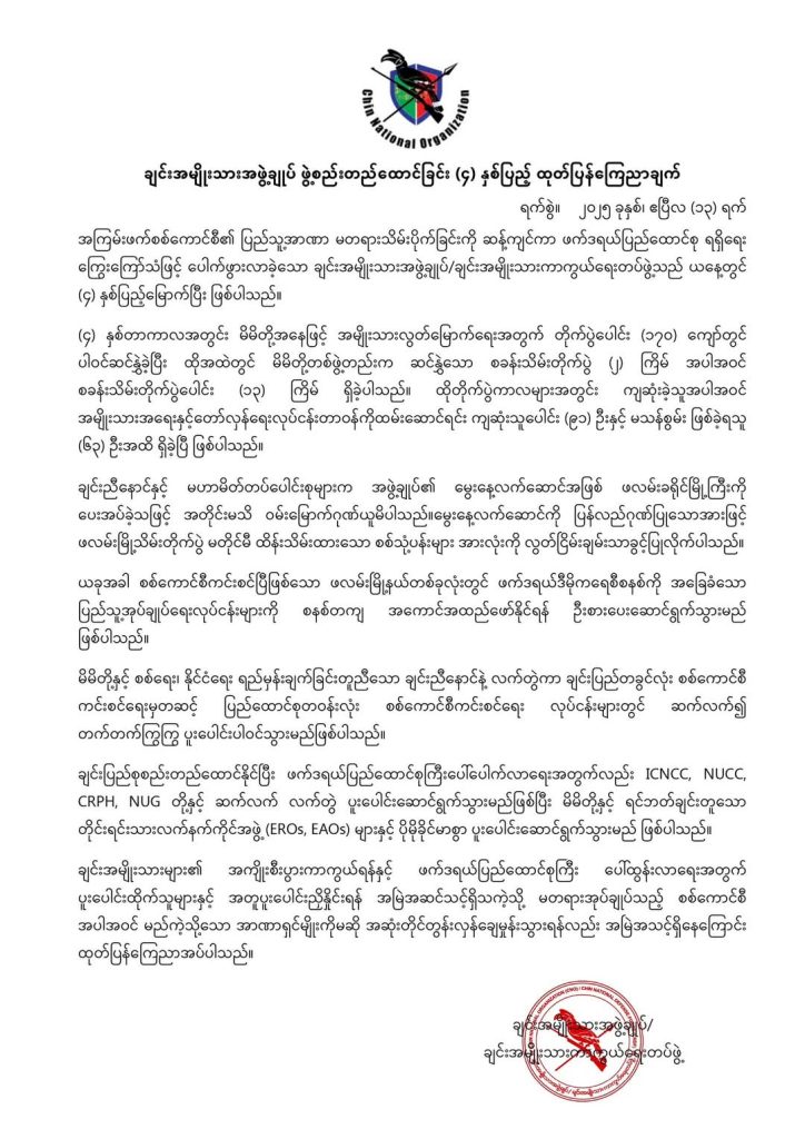 ချင်းလက်နက်ကိုင် CNO/CNDF ရဲ့ လေးနှစ်သက်တမ်းအတွင်းမှာ သေဆုံးသူချင်းလက်နက်ကိုင်အဖွဲ့ဝင် ၉၁ ဦးရှိပြီး ၆၃ ဦး မသန်မစွမ်းဖြစ်ခဲ့တယ်လို့ ချင်းအမျိုးသားအဖွဲ့ချုပ် ဖွဲ့စည်းတည်ထောင်ခြင်း (၄) နှစ်ပြည့် ထုတ်ပြန်ကြေညာချက်မှာ ဖော်ပြထားပါတယ်။