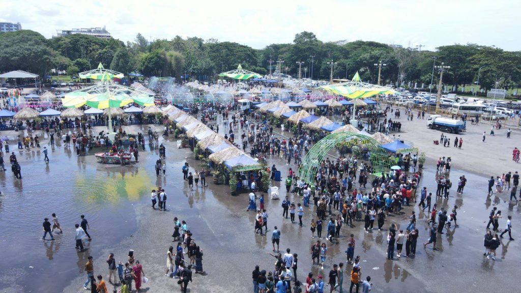 ပြည်သူ့ရင်ပြင်မှာ သင်္ကြန် အကြတ်နေ့နဲ့ အတက်နေ့ နှစ်ရက်တာကာလကို လမ်းလျှောက်သင်္ကြန်ကျင်းပ ပြုလုပ်တာဖြစ်ပြီး ဒုတိယနေ့ဖြစ်တဲ့ ဒီနေ့မနက်မှာတော့ သင်္ကြန်နောက်ဆုံးရက်လည်းဖြစ်တာကြောင့် မနေ့ကထက် လာရောက်သူပိုများပြားခဲ့ပါတယ်။