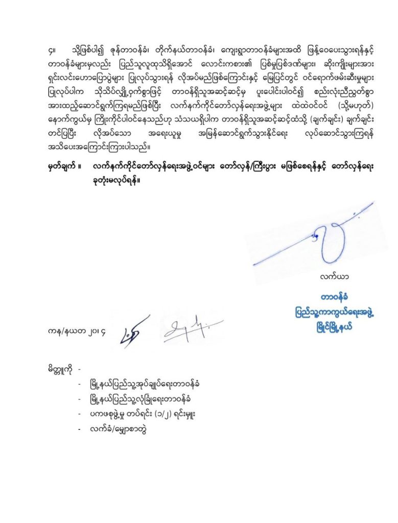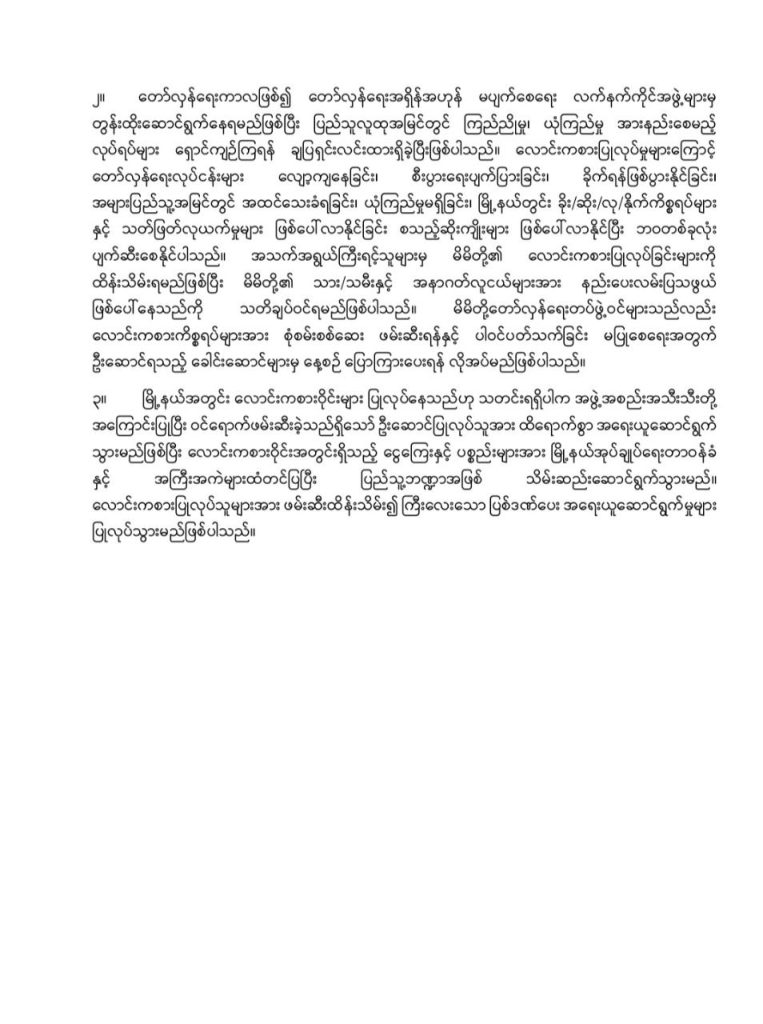 ထို့ပြင် တော်လှန်ရေးကာလဖြစ်၍ တော်လှန်ရေးအရှိန်အဟုန် မပျက်စေရေး လက်နက်ကိုင်အဖွဲ့များမှ တွန်းထိုးဆောင်ရွက်နေရမည်ဖြစ်ပြီး ပြည်သူလူထုအမြင်တွင် ကြည်ညိုမှု၊ ယုံကြည်မှု အားနည်းစေမည့် လုပ်ရပ်များ ရှောင်ကျဉ်ကြရန် ချပြရှင်းလင်းထားရှိခဲ့ပြီးဖြစ်ကြောင်း၊ လောင်းကစားပြုလုပ်မှုများကြောင့် တော်လှန်ရေးလုပ်ငန်းများ လျော့ကျနေခြင်း၊ စီးပွားရေးပျက်ပြားခြင်း၊ ခိုက်ရန်ဖြစ်ပွားနိုင်ခြင်း၊ အများပြည်သူ့အမြင်တွင် အထင်သေးခံရခြင်း၊ ယုံကြည်မှုမရှိခြင်း၊ မြို့နယ်တွင်း ခိုး/ဆိုး/လု/နိုက်ကိစ္စရပ်များ နှင့် သတ်ဖြတ်လုယက်မှုများ ဖြစ်ပေါ်လာနိုင်ခြင်း စသည့်ဆိုးကျိုးများ ဖြစ်ပေါ်လာနိုင်ပြီး ဘဝတစ်ခုလုံး ပျက်ဆီးစေနိုင်ကြောင်း၊ အသက်အရွယ်ကြီးရင့်သူများမှ မိမိတို့၏ လောင်းကစားပြုလုပ်ခြင်းများကို ထိန်းသိမ်းရမည်ဖြစ်ပြီး မိမိတို့၏ သား/သမီးနှင့် အနာဂတ်လူငယ်များအား နည်းပေးလမ်းပြသဖွယ် ဖြစ်ပေါ်နေသည်ကို သတိချပ်ဝင်ရမည်ဖြစ်ကြောင်း၊ မိမိတို့တော်လှန်ရေးတပ်ဖွဲ့ဝင်များသည်လည်း လောင်းကစားကိစ္စရပ်များအား စုံစမ်းစစ်ဆေး ဖမ်းဆီးရန်နှင့် ပါဝင်ပတ်သက်ခြင်း မပြုစေရေးအတွက် ဦးဆောင်ရသည့် ခေါင်းဆောင်များမှ နေ့စဉ် ပြောကြားပေးရန် လိုအပ်ကြောင်း၊ မြို့နယ်အတွင်း လောင်းကစားဝိုင်းများ ပြုလုပ်နေသည်ဟု သတင်းရရှိပါက အဖွဲ့အစည်းအသီးသီးတို့ အကြောင်းပြုပြီး ဝင်ရောက်ဖမ်းဆီးခဲ့သည်ရှိသော် ဦးဆောင်ပြုလုပ်သူအား ထိရောက်စွာ အရေးယူဆောင်ရွက် သွားမည်ဖြစ်ပြီး လောင်းကစားဝိုင်းအတွင်းရှိသည့် ငွေကြေးနှင့် ပစ္စည်းများအား မြို့နယ်အုပ်ချုပ်ရေးတာဝန်ခံ နှင့် အကြီးအကဲများထံတင်ပြပြီး ပြည်သူ့ဘဏ္ဍာအဖြစ် သိမ်းဆည်းဆောင်ရွက်သွားမည်ဖြစ်ကြောင်း၊ လောင်းကစားပြုလုပ်သူများအား ဖမ်းဆီးထိန်းသိမ်း၍ ကြီးလေးသော ပြစ်ဒဏ်ပေး အရေးယူဆောင်ရွက်မှုများ ပြုလုပ်သွားမည်ဖြစ်ကြောင်းလည်း ဖော်ပြထားသည်။