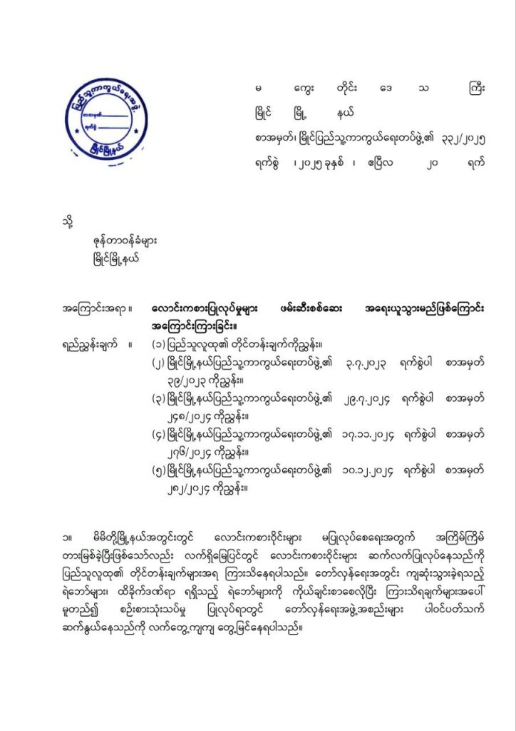 ရေနံတူးဖော်မှုအပြင် KTV နှင့် ပြည့်တန်ဆာခန်းများဖွင့်ကာ နေ့စဥ်ကျပ်ဘီလျံချီဝင်အောင် စီးပွားရှာနေသည့် မြိုင်ပကဖက ပြည်သူများ လောင်းကစားလုပ်လျင်မူ အရေးယူမည် ခြိမ်းခြောက်စာကို ယနေ့ထုတ်ပြန်လာသည်။