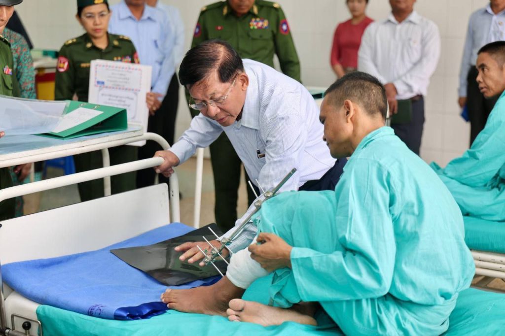 နိုင်ငံတော်စီမံအုပ်ချုပ်ရေးကောင်စီ (SAC) ဥက္ကဋ္ဌ ဗိုလ်ချုပ်မှူးကြီးမင်းအောင်လှိုင်နှင့် ဇနီးတို့သည် ပြင်ဦးလွင်မြို့၊ တပ်မတော်ဆေးရုံသို့ သွားရောက်၍ ဆေးရုံတက်ရောက်ကုသမှု ခံယူလျက်ရှိသည့် ငလျင်ဘေးဒဏ်ကြောင့် ထိခိုက်ဒဏ်ရာရရှိခဲ့သူများနှင့် အရာရှိ၊ စစ်သည်များ၊ မိသားစုဝင်များ၊ မြန်မာနိုင်ငံရဲတပ်ဖွဲ့ဝင်များ၏ ကျန်းမာရေးစောင့်ရှောက်မှု ပေးထားသည့် အခြေအနေများကို ယနေ့တွင် သွားရောက်ကြည့်ရှုအားပေးသည်။