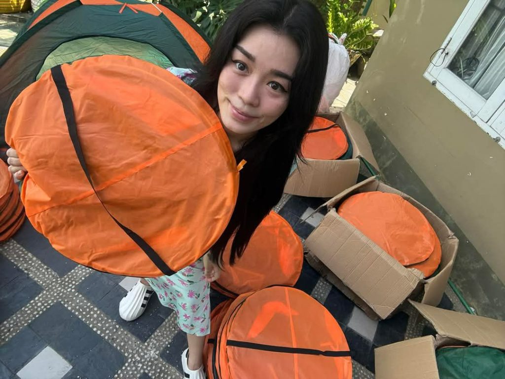 “ဖွေးဆီမှာ ငလျင်ဘေးသင့်သူတွေ တကယ်လိုအပ်နေတဲ့ Tent ၃၀၀ ကို မှာထားခဲ့တာ ရောက်လာပါပြီ။ ဒီ Tent ၃၀၀ မှ ၁၀၅ လုံး ပျော်ဘွယ်မြို့ကို ပို့လိုက်ပါပြီ။ အကူအညီတောင်းလာတဲ့ ပျော်ဘွယ်က လူပျိုကြီးဆီသို့ ပို့ဆောင်လိုက်ပါပြီ။ ဖွေး လက်ထဲ Tent လှူဖို့ ကျန်နေတဲ့ နေရာတွေကို ကောင်းမွန်တဲ့ အကြံပေးမှုတွေကိုလည်း ဖိတ်ခေါ်ပါတယ်။ ငလျင်ဘေးသင့်သူတွေလည်း အဆင်ပြေချောမွေ့ကြပါစေ”လို့ အကယ်ဒမီဖွေးဖွေးက ပရိသတ်သိအောင် ပြောလာပါတယ်။