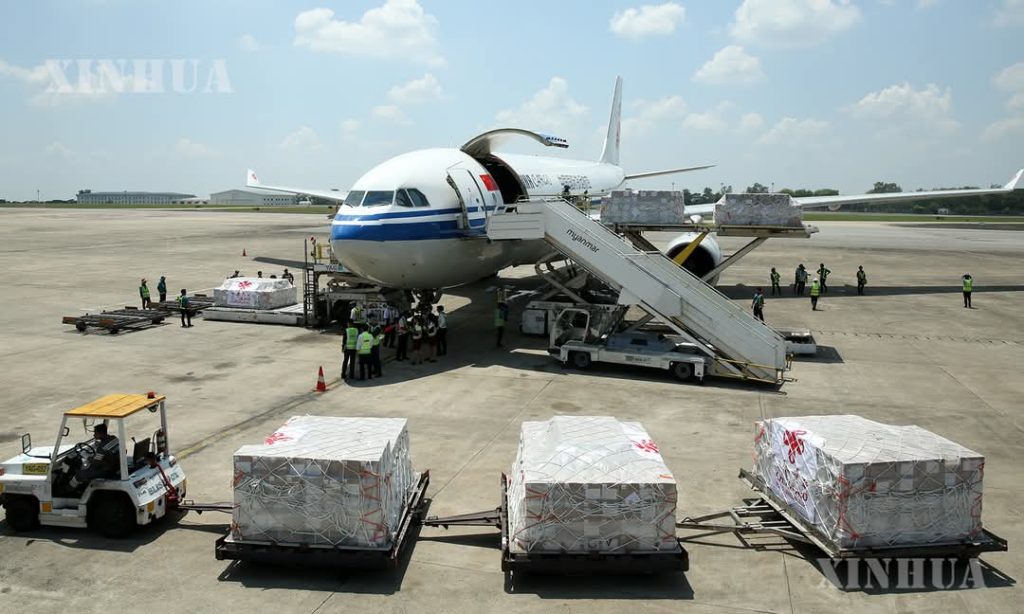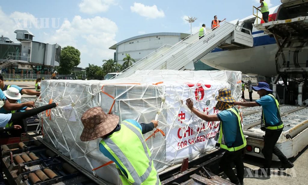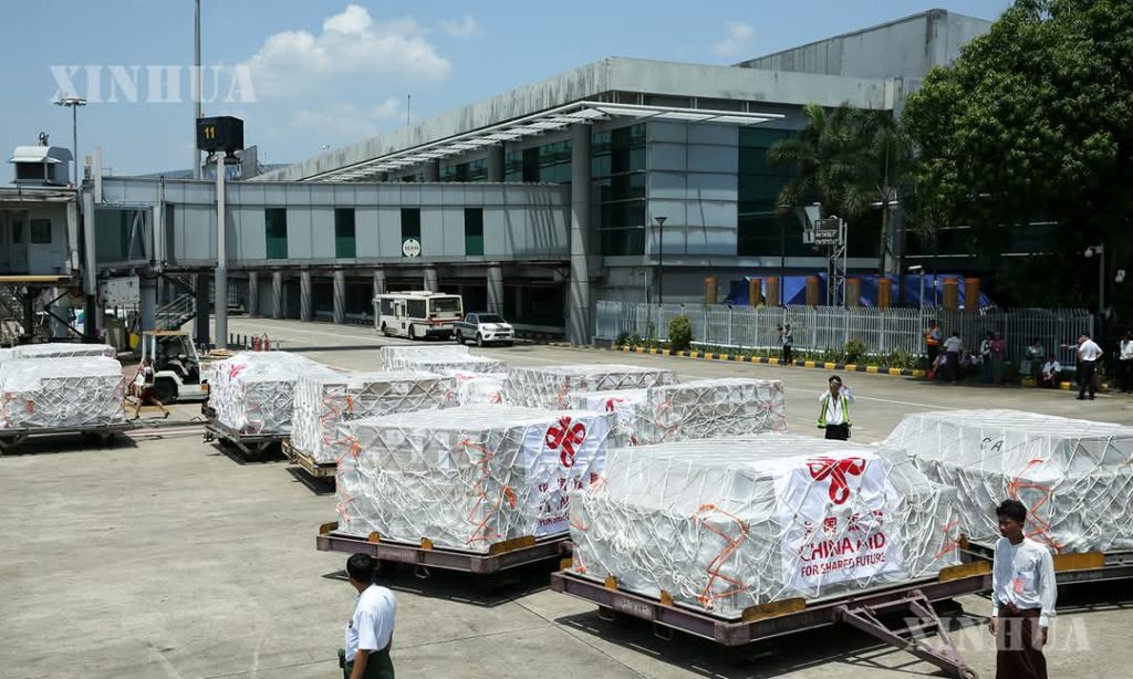 တရုတ်နိုင်ငံအစိုးရက မြန်မာနိုင်ငံအား ကူညီပေးသည့် အဋ္ဌမအသုတ် အရေးပေါ် လူသားချင်းစာနာမှု ငလျင်ဘေးကယ်ဆယ်ရေးပစ္စည်းများသည် ယနေ့ ဧပြီ ၂၂ ရက်တွင် မြန်မာနိုင်ငံ ရန်ကုန်အပြည်ပြည်ဆိုင်ရာလေဆိပ်သို့ ရောက်ရှိခဲ့သည်။