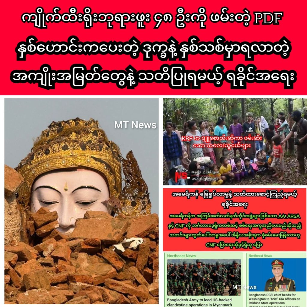လတ်တလော Northeast News ရေးသားနေတဲ့ သတင်းတွေဟာ မှန်မမှန် မသိရသေးပေမဲ့ သက်ဆိုင်တဲ့နိုင်ငံတွေဆီက ငြင်းဆိုသံတော့ ထွက်မလာသေးတာ တွေ့ရပါတယ်။ ဒီလို စစ်ရေးစွက်ဖက်မှုတွေ၊ Proxy War တွေဆိုတာက ပါဝင်တဲ့နိုင်ငံတွေဟာ ကမ္ဘာကို အသိမခံဘဲ နောက်ကွယ်ကသာ လှုပ်ရှားကြတာဖြစ်လို့ ခန့်မှန်းရခက်ပေမဲ့ ရခိုင်မြေမှာ AA နဲ့ ARSA နယ်မြေလုမှုအပြင် OIC က အမေရိကန်နဲ့ အနောက်နိုင်ငံတို့က လူ့အခွင့်အရေးအကြောင်းပြု အစ္စလာမ္မစ်ခွဲထွက်နိုင်ငံထူထောင်လိုတာ၊ တရုတ်နိုင်ငံရဲ့ BRI ထွက်ပေါက်၊ အိန္ဒိယနိုင်ငံရဲ့ အရှေ့မျှော်မူဝါဒနဲ့ အိန္ဒိယ-မြန်မာ- ထိုင်း သုံးနိုင်ငံအပြင် BIMSTEC အတွက် အချက်အခြာကျတဲ့ စစ်တွေမြို့က ကုလားတန်စီမံကိန်း စတာတွေနဲ့ အခြေအနေ ရှုပ်ထွေးနေတာပါ။ ဒါ့အပြင် ဘင်္ဂလားဒေ့ရှ်ဝန်ကြီးချုပ်ဟောင်း ဟာစီနာက အမေရိကန်ဟာ ဘင်္ဂလားဒေ့ရှ်နဲ့ မြန်မာအကြား ခရစ်ယာန်ပြည်နယ် ဒါမှမဟုတ် နိုင်ငံငယ်တစ်ရပ်ထူထောင်နိုင်ရေးနဲ့ ဘင်္ဂလားဒေ့ရှ်နိုင်ငံအတွင်း အမေရိကန်ရဲ့ စစ်အခြေစိုက်စခန်းတည်ဆောက်နိုင်ရေးတို့အတွက် သူမရဲ့ အစိုးရအဖွဲ့ကို ဖိအားပေးနေတယ်ဆိုတာ ပြောခဲ့အပြီးမှာ ဖြုတ်ချခံရတာနဲ့ လက်ရှိမှာ ဘင်္ဂလားဒေ့ရှ်ဟာ အမေရိကန်လိုလားသူ နိုဘယ်ဆုရှင် ယူနွတ်စ်က အာဏာရနေတာကြောင့် ရခိုင်နယ်စပ်အရေးဟာ အမေရိကန်မွှေနှောက်မှုနဲ့အတူ အလွန်ရှုပ်ထွေးနေပြီး သတိထား စောင့်ကြည့်ရမယ့် အခြေအနေပါ။ ဒီအခြေအနေတွေကြားမှာ လူနည်းစုရခိုင်တွေဟာ AA ရဲ့ မွှေနှောက်မှု စစ်ဘုရင်ဝါဒအောက် ပိုင်နက် နယ်မြေပျောက်မသွားအောင်၊ မြန်မာ့အချုပ်အခြာအာဏာ ပိုင်နက်နယ်မြေမပျက်အောင် အရေးတယူစောင့်ကြည့်သင့်တဲ့ အကာလကို ရောက်လာပြီလို့ သုံးသပ်မိကြောင်း တင်ပြရင်း ဒီတစ်ပတ်ရဲ့ နိုင်ငံရေးသုံးသပ်ချက် ရပ်နားပါရစေ။