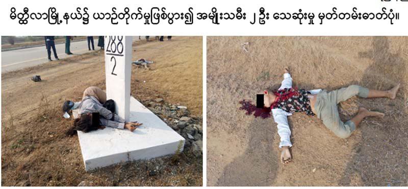မန္တလေးတိုင်းဒေသကြီး၊ မိတ္ထီလာမြို့နယ်တွင် အမြန်လမ်းပေါ် ဆိုင်ကယ်တက်မောင်းသည့်ညီအစ်မနှစ်ဦးမှာ ကားတစ်စီးနှင့်တိုက်မိရာက နှစ်ဦးစလုံး ပွဲချင်းပြီး သေဆုံးကုန်ကြသော်လည်း အဆိုပါ အခင်းဖြစ်စဉ်အတွက် ဆိုင်ကယ်တက်ရောက်မောင်းနှင်ခွင့်မရှိသည့် အမြန်လမ်းပေါ် ဆိုင်ကယ် မောင်းနှင့်မှုဖြင့် သေဆုံးသူကိုသာ အမှုဖွင့်လိုက်ရသည်ဟု မြန်မာနိုင်ငံရဲတပ်ဖွဲ့ထံက သိရသည်။