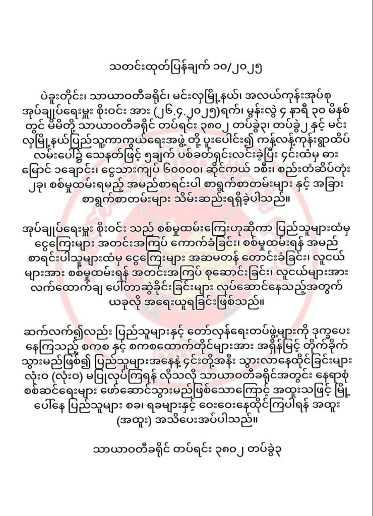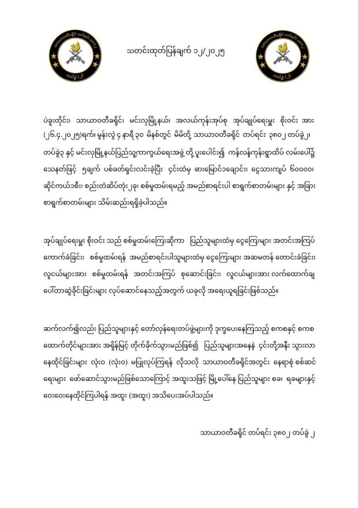 အုပ်ချုပ်ရေးမှူး ဦးစိုးဝင်းကို PDF သုံးဖွဲ့က ရက်စက်စွာသတ်ဖြတ်ပြီးတဲ့နောက်မှာ ဓားမြောင် ၁ ချောင်း၊ ငွေသားကျပ် ၆၀၀၀၀၊ ဆိုင်ကယ် ၁ စီး၊ စည်းတံဆိပ်တုံး ၂ ခု၊ စစ်မှုထမ်းရမယ့် အမည်စာရင်းပါ စာရွက်စာတမ်းတွေနဲ့ အခြားစာရွက်စာတမ်းတွေသိမ်းဆည်းရရှိခဲ့တယ်လို့လည်း ဆိုပါတယ်။