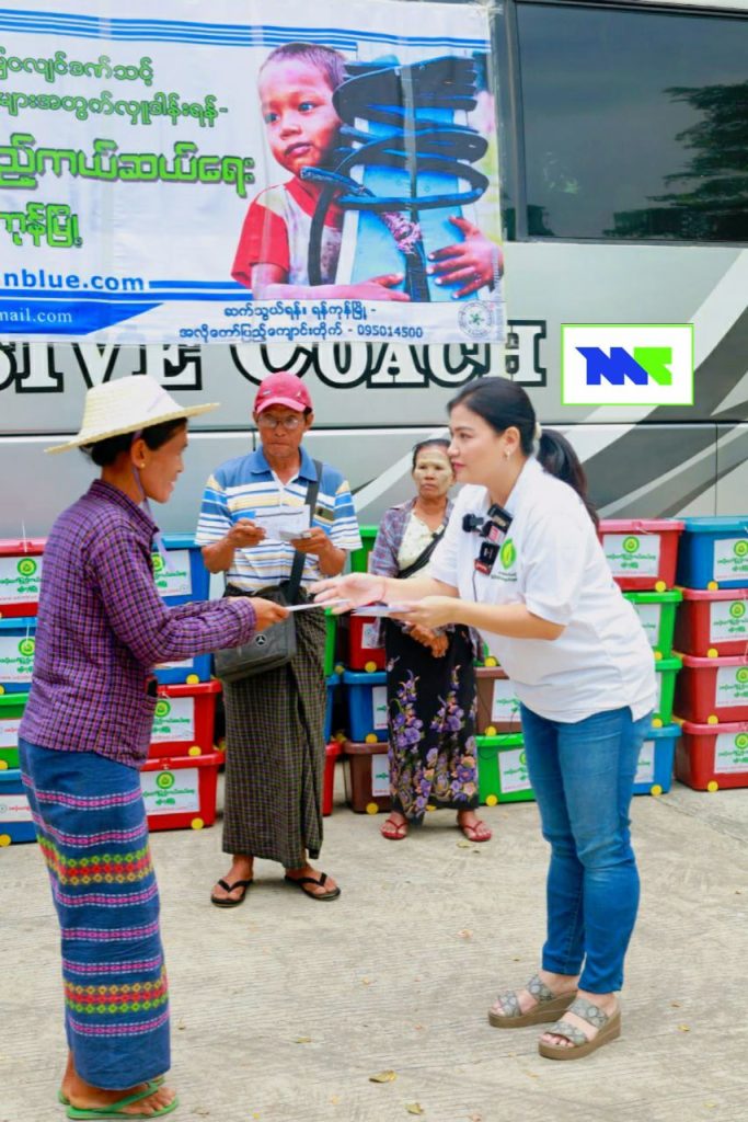 အဆိုပါ လှူဒါန်းမှုမှာတော့ အိုးအိမ်ပျက်စီးပြိုကျအိမ် ၁၂ လုံး၊ ထိခိုက်ခံရသူ ၂၂၈ ဦး၊ တကယ်ခက်ခဲနေကြ တဲ့ အိမ်ထောင်စု ၅၀ စာအတွက် ခေါက်ဆွဲခြောက်၊ သွားတိုက်တံ၊ တစ်ရှုး၊ ကော်ဖီ၊ ဆေး၊ ငါးသေတ္တာ၊ လက်ဖက်ထုပ်၊ ပုဆိုးစတဲ့ ပစ္စည်းပေါင်း ၂၀ ကျော်ကို လှူဒါန်းခဲ့ကြတာလည်း ဖြစ်ပါတယ်။ အိမ်လုံးဝပျက်စီးသွားသူ ၁၂ ဦးအတွက် ငွေကျပ် ၅သောင်းနှုန်းစီလည်း လှူဒါန်းခဲ့ပါတယ်။