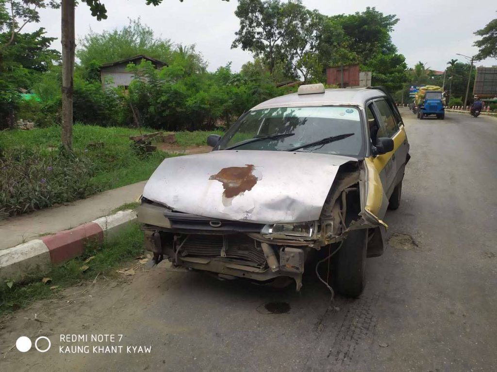 ယင်းသို့ ဇနီးမောင်နှံနှစ်ဦးအား ဝင်တိုက်မိပြီးနောက် အငှားယာဉ် Taxi တစ်စီးကို ထပ်မံ ဝင်တိုက်မိရာ ယင်း Taxi က အုတ်၊ သဲ၊ ကျောက်ယာဥ်တစ်စီးကို ထပ်မံ တိုက်မိခဲ့ခြင်း ဖြစ်သည်။