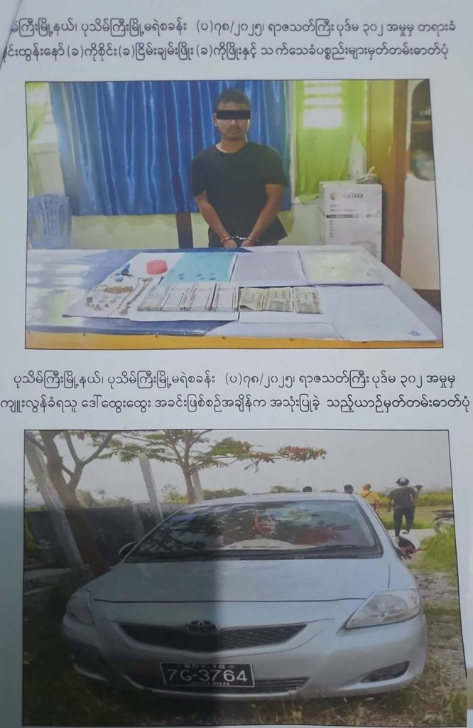 “အိမ်ခြံမြေလုပ်ငန်းလုပ်ကိုင်တဲ့ အငြိမ်းစားပါမောက္ခ ဒေါ်ထွေးက ပြီးခဲ့တဲ့ ဧပြီလ ၂၅ ရက်က ပျောက်နေတယ်။ အလောင်းတစ်လောင်းကို တွေ့တယ်ဆိုတော့ သွားကြည့်တဲ့အခါ သေဆုံးနေတာကို တွေ့ကြတာ။ သူ့ကို သတ်တဲ့သူကလည်း အိမ်ခြံမြေ လုပ်တာပဲ။အရောင်းအဝယ်လုပ်မယ့် မြေကွက်ကို နေရာသိဖို့ လိုက်ကြည့်ကြတာ။ အဲဒီလူက လူကို သတ်ပြီး ပစ္စည်းတွေပါ ယူသွားတယ်။ ပစ္စည်းတွေကတော့ ဝတ်ထားတဲ့လက်ဝတ်လက်စား ရွှေထည်တွေနဲ့ ပိုက်ဆံတွေပေါ့။ ပြီးတော့ အိမ်ခြံမြေစာချုပ်တွေကိုလည်း ယူသွားတယ်။ ပြီးတော့ မိသားစုလိုက် ရှမ်းပြည်ဘက်ကို ပြောင်းပြေးသွားတာ။ အခု ဟဲဟိုးမှာ ဒီကနေ့ပဲ သက်သေခံပစ္စည်းတွေနဲ့အတူ ဖမ်းမိခဲ့ပါတယ်”ဟု ရဲတပ်ဖွဲ့၏ မှတ်တမ်းများကို ကိုးကား၍ မန္တလေးတိုင်းဒေသကြီး အုပ်ချုပ်ရေးအဖွဲ့တာဝန်ရှိသူက MT News ကို ပြောသည်။