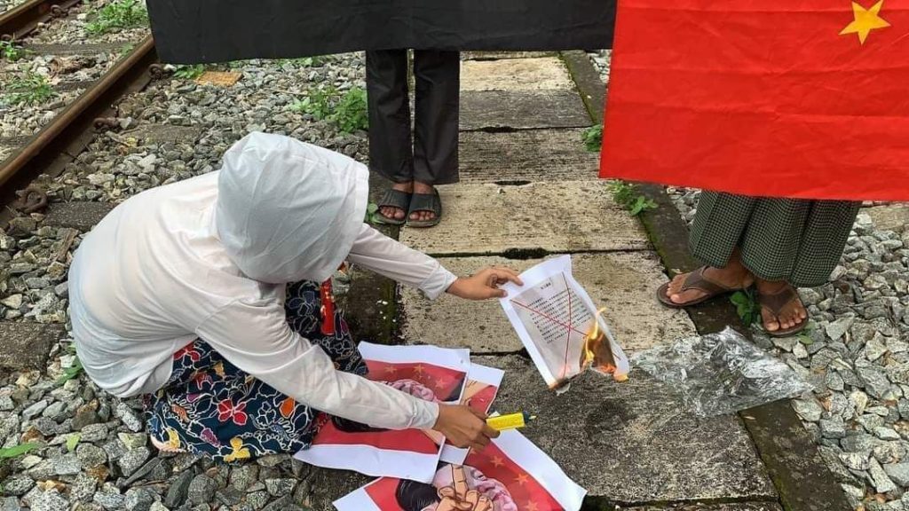 NUG နှင့် PDF များက တရုတ်နိုင်ငံကို ဆန္ဒပြမှုများစွာအပြင် တရုတ်သမ္မတရှီကျင့်ဖျင်၏ ပုံ၊ တရုတ်အလံတို့ကို မီးရှို့ကာ ခြေဖြင့်နင်းခြင်းများလည်း ပြီးခဲ့သည့် နှစ်ကုန်ပိုင်းက ပြုမူခဲ့ဖူးပြီး တရုတ်၏ စီမံကိန်းများကို ဖျက်ဆီးတိုက်ခိုက်ရာတွင်လည်း လက်ပံတောင်းတောင်ကြေးနီစီမံကိန်းမှာ အဓိကတိုက်ခိုက်မှု ကြုံနေရသလို ဒေါ်လာသန်း ၉၀၀ ခန့် မြုပ်နှံထားသည့် တကောင်းတောင်စီမံကိန်းမှာလည်း ၂၀၂၄ ခုနှစ် ဇူလိုင်လမှစတင်ကာ PDF များ တိုက်ခိုက်ဖျက်ဆီး သိမ်းယူခံထားရသည်။