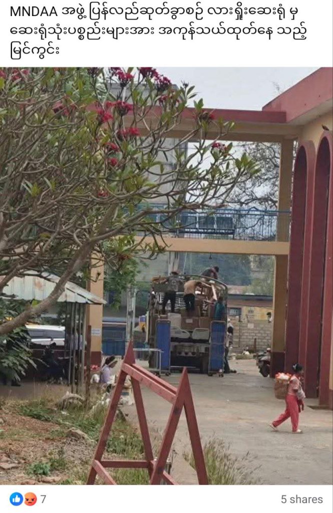 ပုံစာ။ လားရှိုးမြို့၏ ယနေ့မြင်ကွင်းနှင့် ဆေးရုံပစ္စည်းများ MNDAA ခိုးထုတ်ကာ ရာဇဝတ်သားများ လွှတ်ပေးခဲ့သည့် သတင်းဖော်ပြမှုအချို့ (Photo – Mekhong News & CJ)