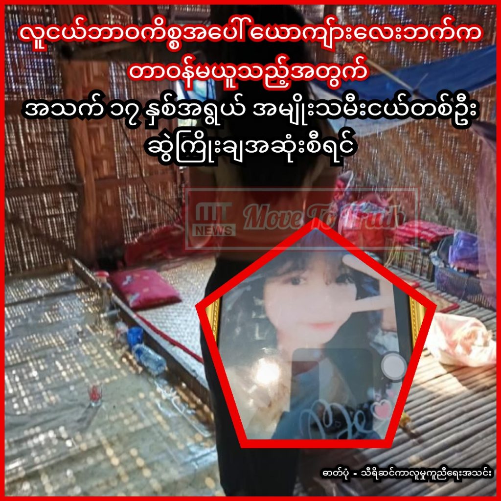 အဆုံးစီရင် ကွယ်လွန်သူ အမျိုးသမီးငယ်မှာ အမရပူရမြို့ ယမ်းရှေ့၊ ယမ်းပျံရပ်ကွက်မှ အသက် ၁၇ နှစ်အရွယ်သာ ရှိသေးသည့် မလွင်ပိုးသွယ် ဆိုသူဖြစ်ပြီး နာရေးကိစ္စများကို ဧပြီ ၂၈ ရက်နှင့် ၂၉ ရက်နေ့တွင် သီရိဆင်ကာပရဟိတလူမူကူညီရေးအသင်းက အစအဆုံး ကူညီဆောင်ရွက်ပေးခဲ့ကြောင်း သိရသည်။