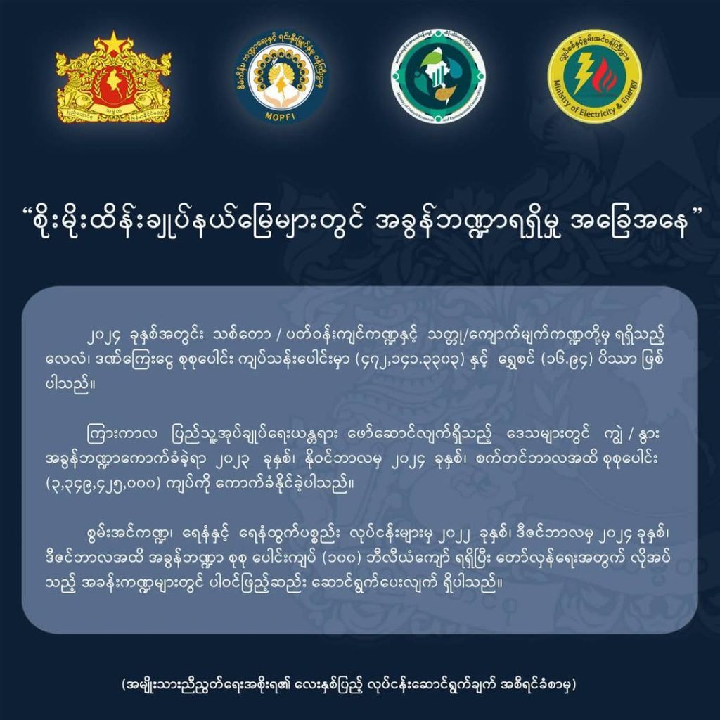 ထို့အပြင် စွမ်းအင်ကဏ္ဍ၊ ရေနံနှင့် ရေနံထွက်ပစ္စည်း လုပ်ငန်းများမှ ၂၀၂၂ ခုနှစ်၊ ဒီဇင်ဘာလမှ ၂၀၂၄ ခုနှစ်၊ ဒီဇင်ဘာလအထိ အခွန် စုစုပေါင်းကျပ် ၁၀၀ ဘီလျံကျော် ရရှိထားသည်ဟုလည်း NUG က ပြောသည်။