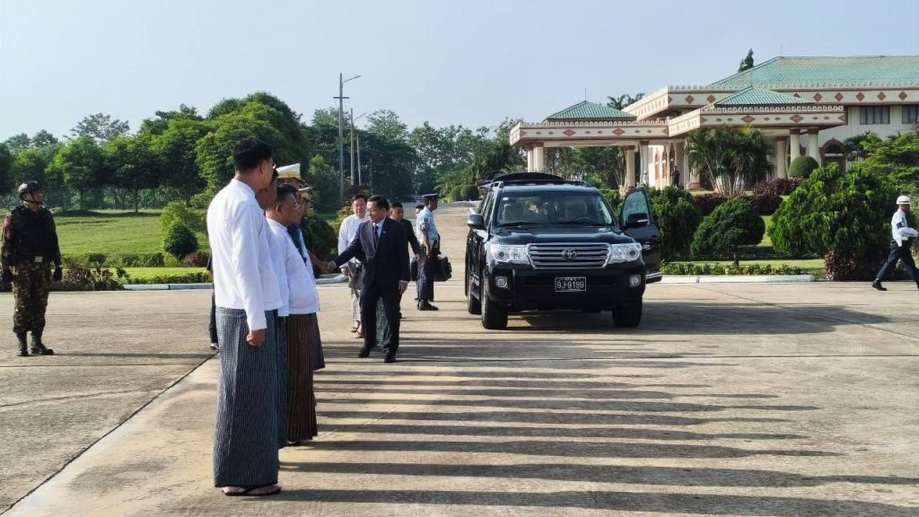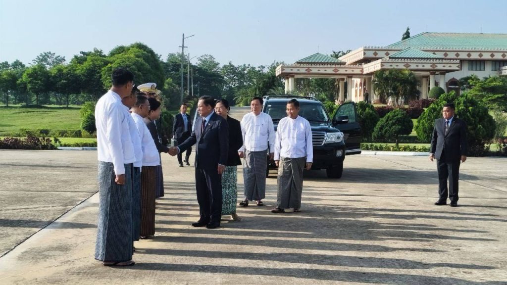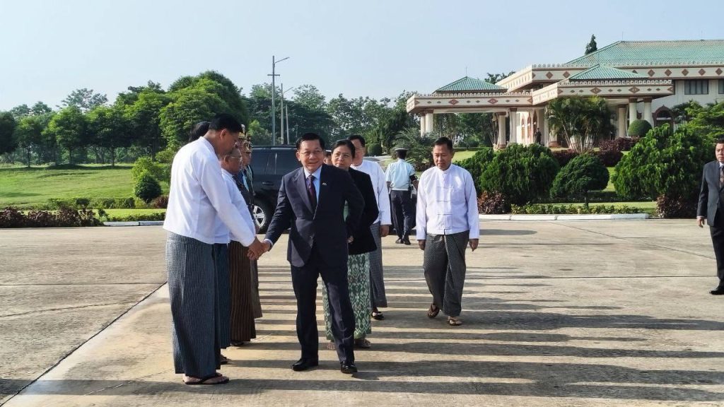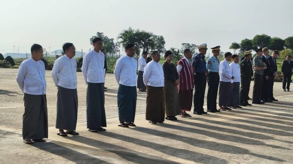 ဗိုလ်ချုပ်မှူးကြီး မင်းအောင်လှိုင် ဦးဆောင်သော အဆင့်မြင့် ကိုယ်စားလှယ်အဖွဲ့ အား SAC ဒုတိယဥက္ကဋ္ဌ ဒုတိယဗိုလ်ချုပ်မှူးကြီး စိုးဝင်း၊ ကောင်စီ အတွင်းရေးမှူး ဗိုလ်ချုပ်ကြီး အောင်လင်းဒွေးနှင့် ကောင်စီဝင်များ အဆင့်မြင့် တပ်မတော်အရာရှိကြီးများက လေဆိပ်တွင် ပို့ဆောင်နှုတ်ဆက်ခဲ့ကြပြီး နိုင်ငံတော်ဝန်ကြီးချုပ်နှင့်အတူ ဇနီးဖြစ်သူ ဒေါ်ကြူကြူလှ၊ ကောင်စီ တွဲဖက်အတွင်းရေးမှူး ဗိုလ်ချုပ်ကြီး ရဲဝင်းဦး၊ ကောင်စီအဖွဲ့ဝင်များဖြစ်သည့် ဒေါက်တာ ဘရွှေနှင့် ခွန်စံလွင်၊ ဒုတိယဝန်ကြီးချုပ်နှင့် ကာကွယ်ရေး ဝန်ကြီးဌာန ပြည်ထောင်စုဝန်ကြီး ဗိုလ်ချုပ်ကြီး မောင်မောင်အေး၊ ဒုတိယဝန်ကြီးချုပ်နှင့် နိုင်ငံခြားရေးဝန်ကြီးဌာန ပြည်ထောင်စုဝန်ကြီး ဦးသန်းဆွေ၊ ညှိနှိုင်းကွပ်ကဲရေးမှူး (ကြည်း၊ ရေ၊ လေ) ဗိုလ်ချုပ်ကြီး ကျော်စွာလင်း၊ ဒုတိယဝန်ကြီးများနှင့် အဆင့်မြင့် အရာရှိကြီးများ လိုက်ပါသွားကြောင်း သိရသည်။