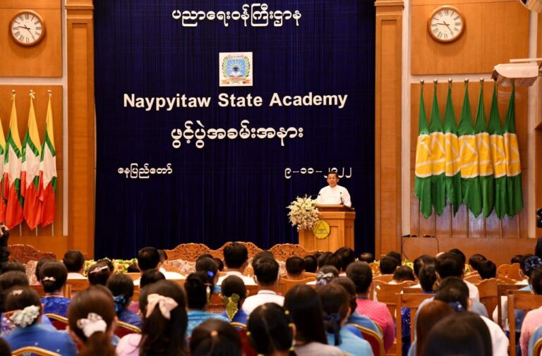 MT News 国家行政委员会主席、总理敏昂莱大将在11 月 9 日内比都国立学院落成典礼上说;内比都国立学院成立的目的是塑造仰光和曼德勒大学等国家高水平机构。 此外,高级将军说;建立该学院的目的是将内比都变成一个教育中心,并使在内比都履行职责的政府雇员和内比都八个乡镇的居民的后代,包括 Zabu Thiri、Zeya Thiri、,OttaraThiri、Dakhina Thiri、Pobba Thiri、Pyinmana、Tatkon 和 Lewe 镇可以学习他们选择的各种国际标准的高级学科。 该学院的形成类似于仰光和曼德勒大学的学院。 他补充说,这些学院是艺术、科学、法律、经济、医学、社会和体育学院。...