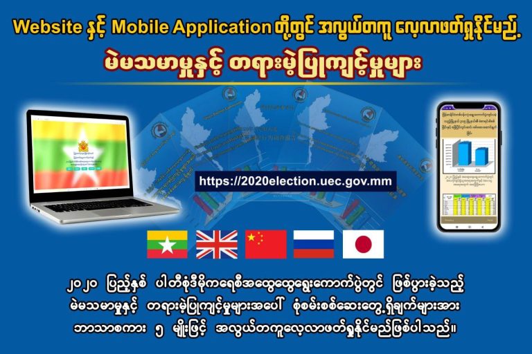 关于2020年多党民主大选中发生的“选票舞弊与非法行为”的调查结果,国内外有兴趣的人员可以从11月22日起,通过网站和移动应用程序进行查阅。 在该网站和移动应用程序中,用户可以全面查阅以下内容:选前阶段的预谋和执行活动、选举期间的操作、选后阶段的事件、覆盖全缅甸范围内的315个选区的选票核查和实地调查、关于整个选举过程的综合调查结果、取消2020年多党民主大选的结果、针对2020年多党民主大选的分析和评论、相关的纪实照片等。所有关于2020年多党民主大选中“选票舞弊与非法行为”的调查结果,均可在此平台上集中查阅。 此外,相关内容将以缅甸语、英语、中文、俄语和日语五种语言发布。有兴趣的用户可以通过访问 https://2020election.uec.gov.mm (https://2020election.uec.gov.mm/) 或下载该网站上提供的移动应用程序进行查阅。