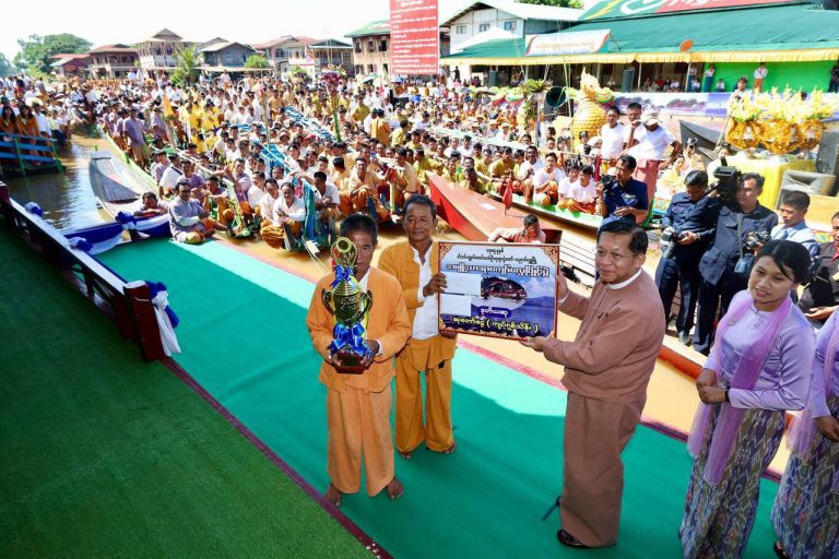2023 年10月22日 , MT News 今天上午,在Nyaungshwe的Athadisa Dhammavihara寺举行了向Nyaungshwe的Athadisa Dhammavihara寺转送Inle Phaung Daw Oo佛像的仪式,国家行政会议主席、总理敏昂莱大将出席了仪式,他参拜并转交了佛像。 与高级将军一起出席的还有夫人 Daw Kyu Kyu Hla、SAC 联合秘书和妻子、SAC...