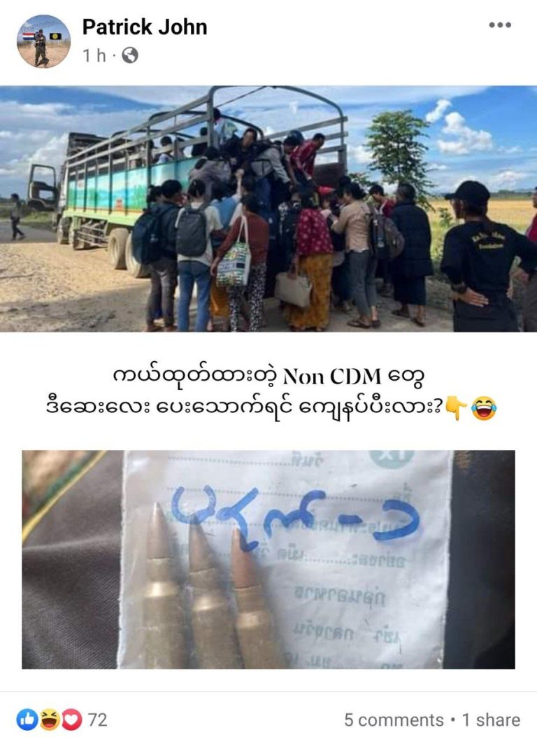 据报道,德昂民族解放军发布的虚假新闻声明于 11 月 21 日通过网络媒体传播,而 Tatmadaw 缅军已为地区安全和执法采取必要的安全行动,因为 德昂民族解放军团体和 PDF 恐怖分子正在攻击 Namhkam 镇的安全哨所掸邦(北部)。 虚假陈述称,缅军使用毒气弹袭击了他们。 德昂民族解放军发布的虚假声明已被一些不希望国家和平与稳定的媒体(包括 Khit Thit 媒体)在网络上发布。...