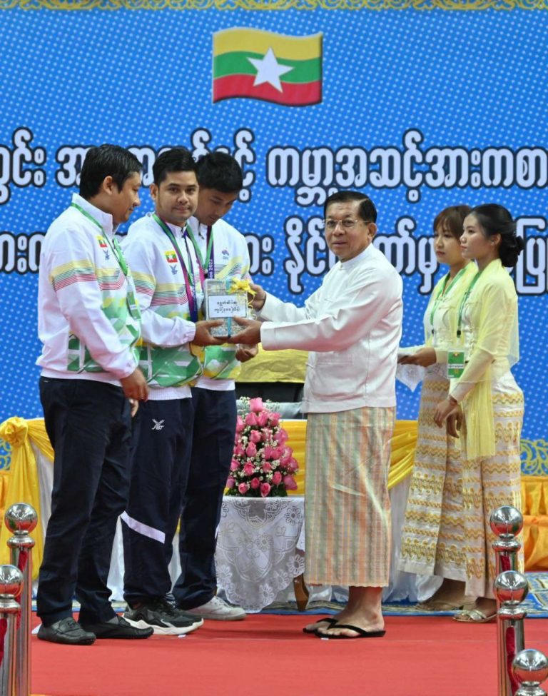 仪式上,中国驻缅甸大使馆已向将参加亚运会的缅甸武术联合会,赛艇协会和足协各提供了2805美元的补助金。