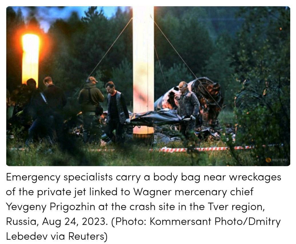 俄罗斯民航当局表示,俄罗斯雇佣兵领袖耶夫根尼·普里戈津(Yevgeny Prigozhin)的名字出现在一架在俄罗斯坠毁的飞机乘客名单上,机上全部10人遇难。