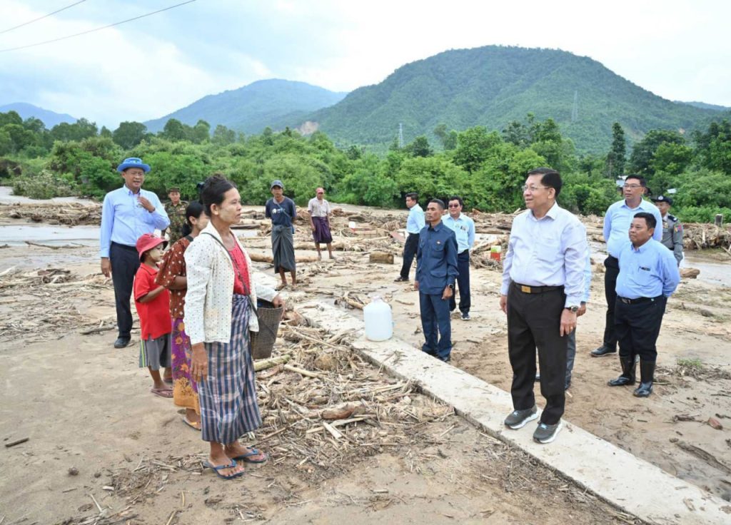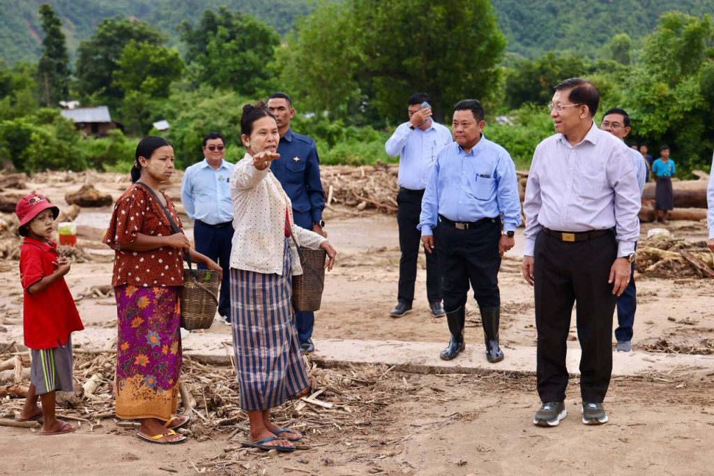 随后,国家管理委员会主席还前往视察了由于山洪暴发和木材阻塞导致的金塔大坝决堤情况,指示相关部门系统修复受损的大坝并处理其他必要问题。