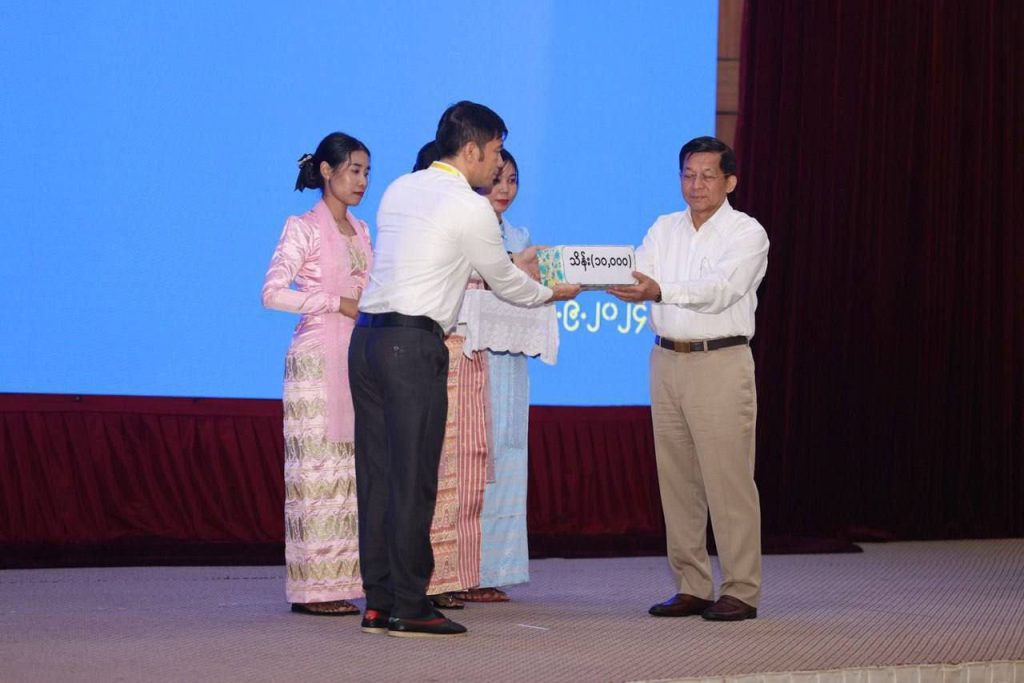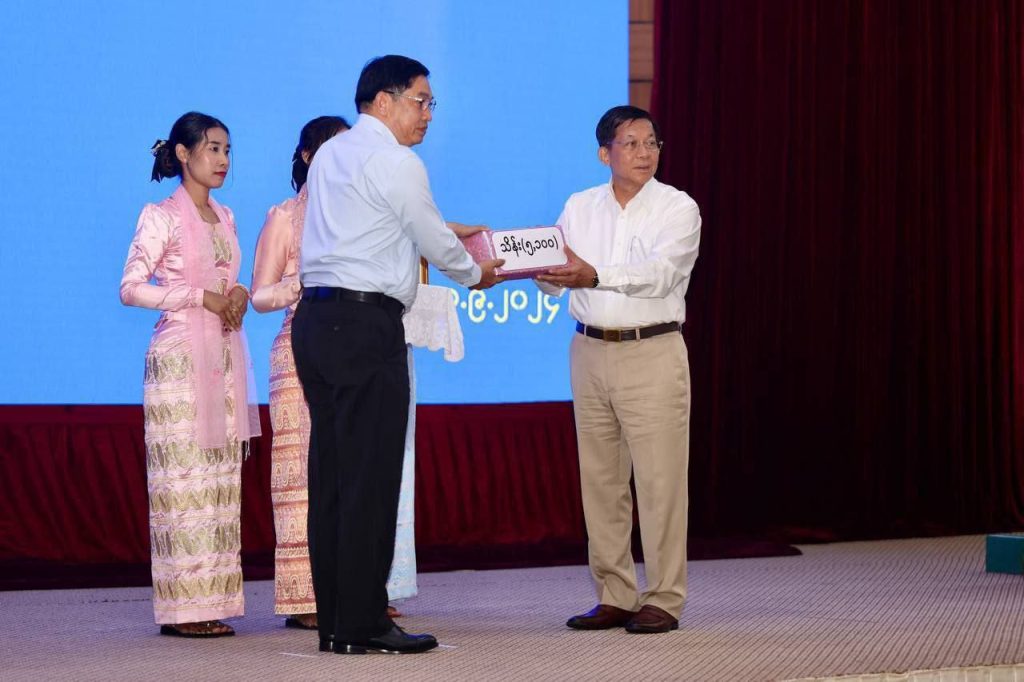 国家管理委员会主席、国家总理敏昂莱大将出席了仪式,接受了来自捐赠者和善心人士的捐款,并颁发了荣誉证书,向他们表达了感谢。