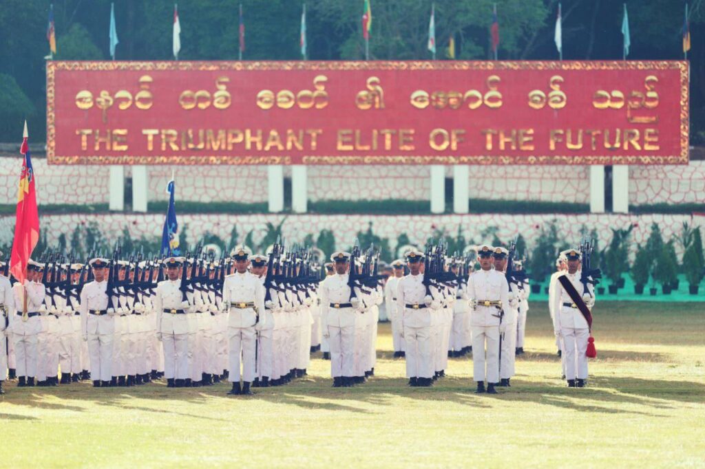 军事学院学员课程第(64)届毕业典礼今天上午在彬乌伦镇举行。 仪式在军事学院军事体育场举行,国家计划行政委员会主席、武装部队国防参谋长玛哈色拉图敏昂莱Maha Thray Sithu Min Aung Hlaing 少将出席并致辞。