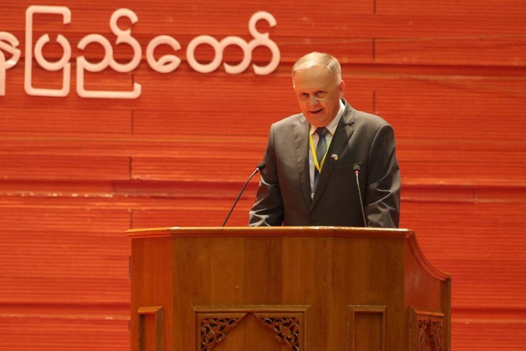 他是在内比都缅甸国际会议中心2号馆举行的纪念缅甸联邦共和国与俄罗斯联邦建交75周年的缅俄友好合作论坛上发表上述评论的。