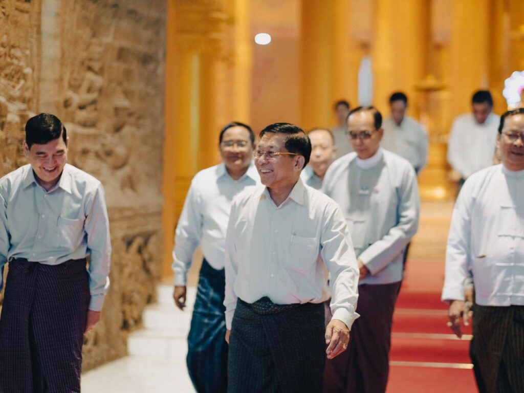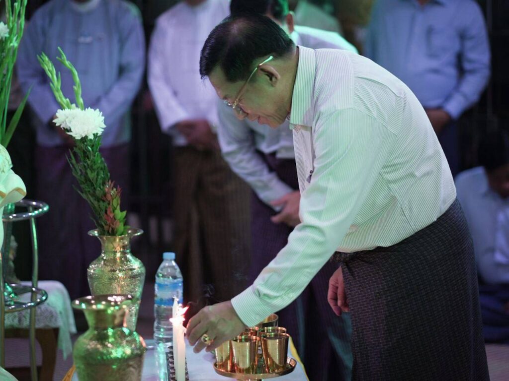 上将夫妇向尊者致敬,问候他的健康,并祈求宗教事务。 然后,捐赠了大米、食用油和其他种类的捐赠品,包括缅军(陆军、海军和空军)家属捐赠的现金。