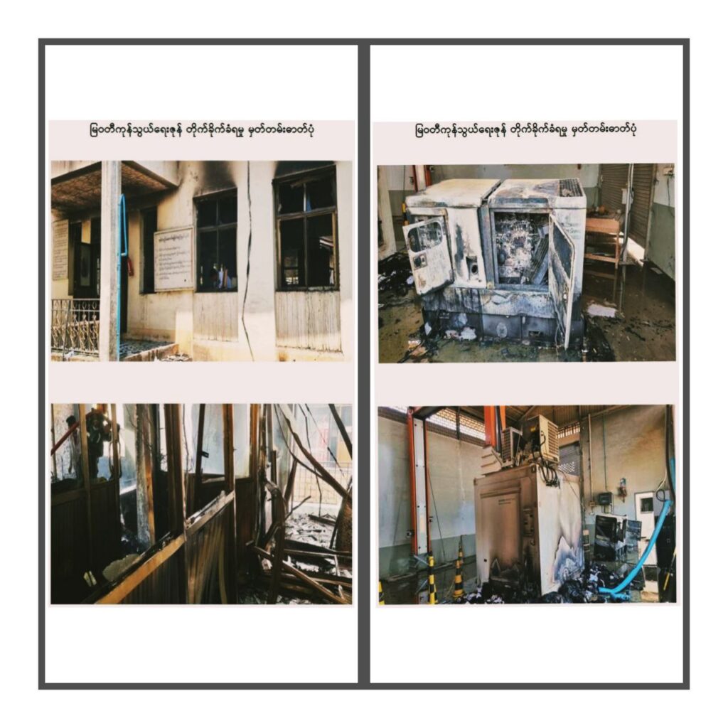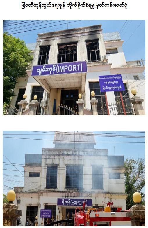 ” 贸易区建筑和X光机被烧毁。然后这个贸易区的安全部队进行抵抗和袭击。三名警察在那里被杀。然后一名海关人员被杀。一名无辜平民被杀。一些警察也失去了联系。我们还看到死者的尸体和被杀者的尸体被烧毁。我们也看到非人道的行为和战争罪的行为,”Zaw Min Tun 将军说。