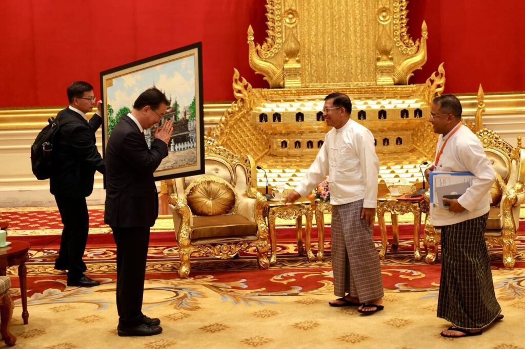 4月3日,国家行政委员会主席敏昂莱大将在内比都会见中华人民共和国云南省委书记王宁。
