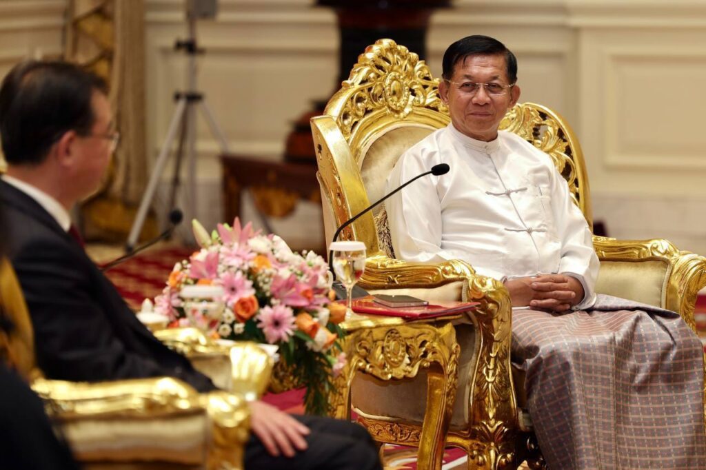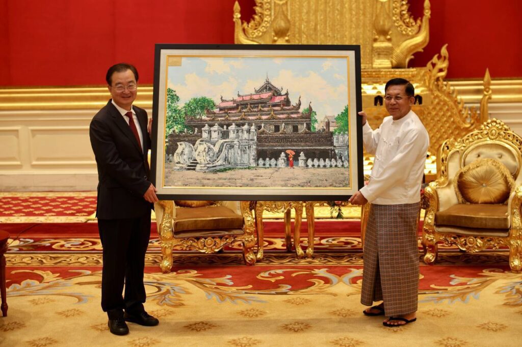 与高级将领一起出席会议的还有 SAC 联合秘书Ye Win Oo中将、国际合作联盟部长 U Ko Ko Hlaing 和其他官员。 委员会书记由中华人民共和国驻缅甸大使陈海阁下及有关官员陪同。