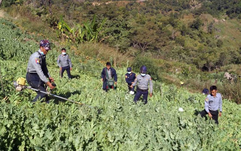 27 February 2025 Authorities destroyed 20 acres of opium poppy fields in Panglong town in Loilem township...
