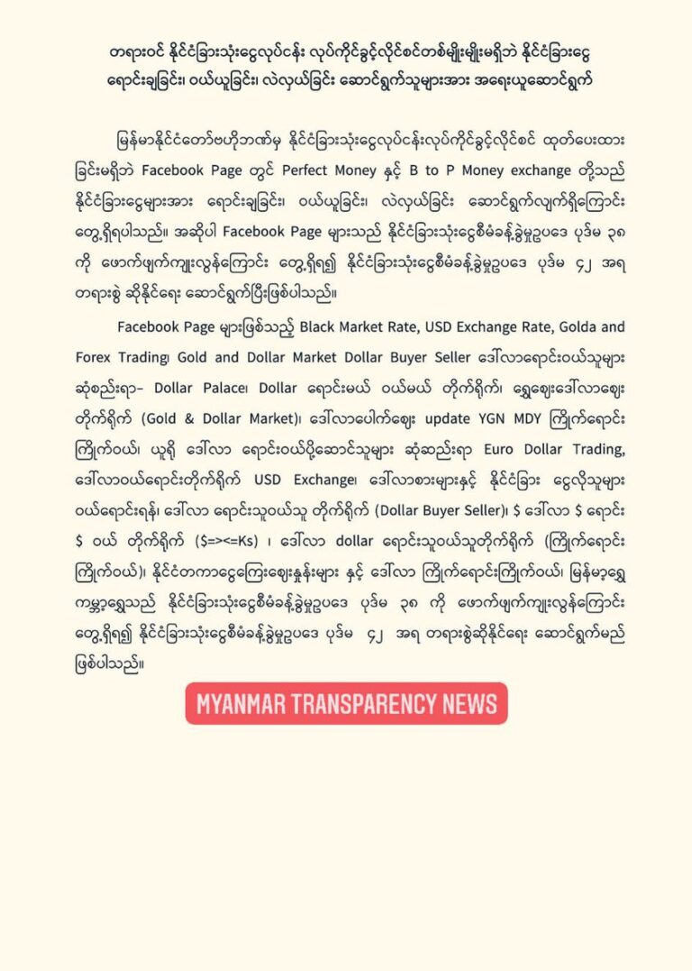 17 October 2022 The Central Bank of Myanmar issued a notification that legal action will be taken...