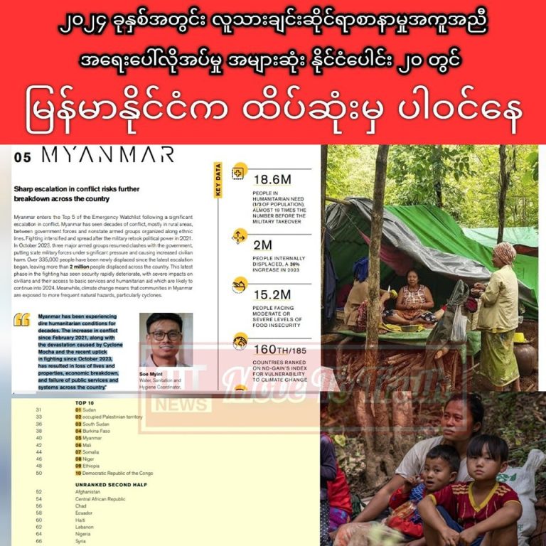 10 January 2024 Myanmar is among the top 20 countries in urgent need of humanitarian aid in...